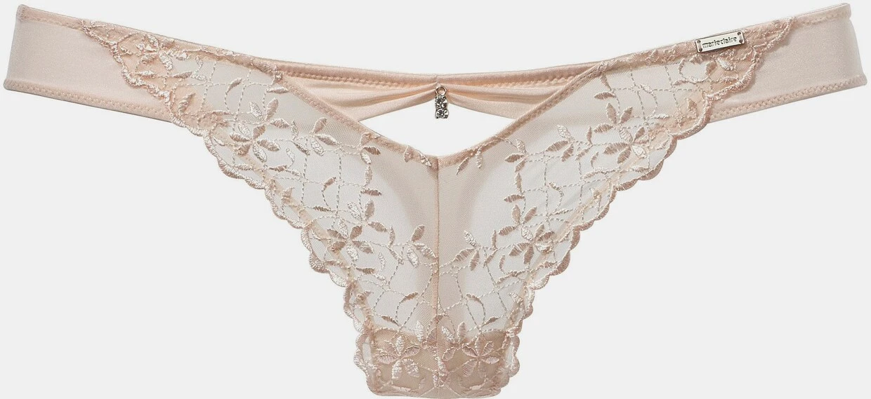 Femininer String aus edler Stickerei in dezent transparenter Optik. Raffdetail und feines Glitzer-Accessoire vorn. Hinten aus softer Microtouch-Ware mit toller Raffung. Mit eingearbeitetem Baumwollzwickel. Mit passendem BH aus der gleichen Serie erhältlich. Obermaterial: 60% Polyamid, 20% Elasthan, 20% Polyester.