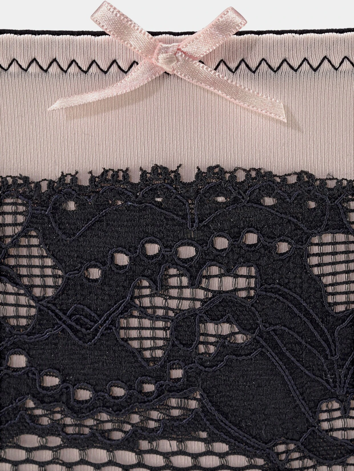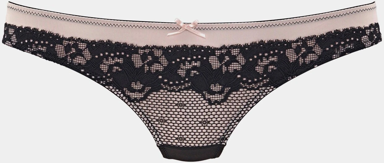 Cups aus Microtouch, bezogen mit Spitze. Flügel aus feinem Netzmaterial. Mit nicht herausnehmbaren Kissen. Zierschleife in der vorderen Mitte. Der Push-up-BH ist aus 60% Polyamid, 35% Polyester, 5% Elasthan. String aus 90% Polyamid, 10% Elasthan. String mit weichem, vorderem Bund aus Microtouch, sonst aus Spitze. Hinten ganz aus zarter Netzware gearbeitet. Maschinen-, BH Handwäsche. BHs sind nicht trocknergeeignet, da die Versteller und Ringe durch die Hitze beschädigt werden und brechen.