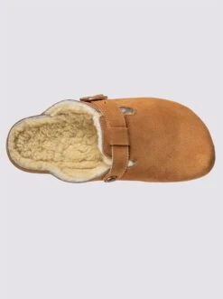 Pantolette Herrlich warm, mit echtem Lammfell gefüttert. Aus weichem Rind-Veloursleder. Weitenregulierung durch Riegel mit Dornschließe. Mit fellbezogenem Fußbett für mehr Tragekomfort. Rutschsichere Laufsohle mit Stoß-Absorber im Fersenbereich. Keilabsatz, Höhe ca. 10 mm. Weite F.