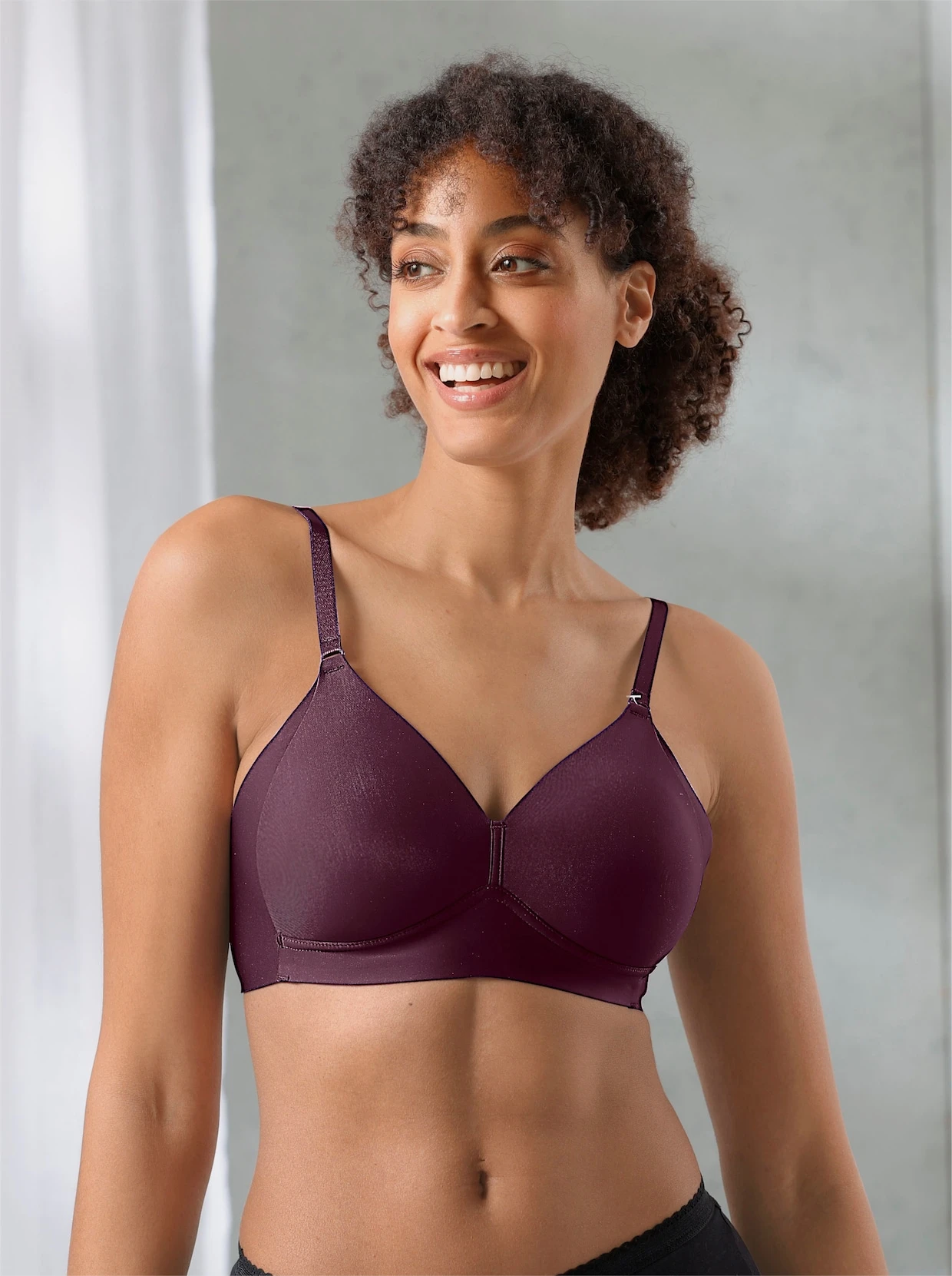 Der Frauenversteher: T-Shirt-BH ohne Bügel von Naturana. Die spezielle Verarbeitung formt leicht. Die breiten Seitenteile verhindern, dass sich kleine Röllchen unter den Armen bilden. Dank der flachen Nähte zeichnet sich nichts ab. Im Rücken verstellbare Träger.