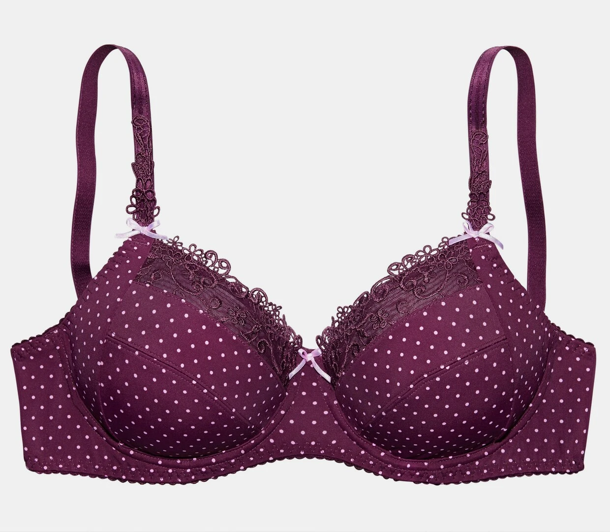Dieser Bügel-BH bietet Dank seiner Schnittführung komfortablen Halt bis in große Größen und sieht dabei auch noch schön aus. Die Stickereispitze am Obercup und an den Trägern vorn sorgen für einen schönen Look. Die gefütterten Cups und die seitlich gearbeitete Stütze formen eine schöne Büste und geben Halt. Im dezenten Pünktchendruck oder im schlichtem uni Weiß erhältlich. Rückenverschluss mit 3 Verstellmöglichkeiten. Unsere BH´s werden für jede Größe maßgeschneidert. Wir verwenden für größere Größen breitere Träger als abgebildet, um ein Einschneiden auf der Schulter zu verhindern. Auch die Rückteile und Verschlussbreiten wachsen mit, um in jeder Größe optimalen Halt und sicheren Sitz zu bieten. Für hohen Tragekomfort sorgen breitere Elastikbänder entlang der Kanten, die dank hochelastischer Nähte nicht einschneiden. Der Bügel-BH ist aus 80% Polyamid, 10% Viskose, 10% Elasthan. Sexy Dessous. Spitzen-Dessous. Romantische Dessous. Verspielte Dessous. BHs sind nicht trocknergeeignet, da die Versteller und Ringe durch die Hitze beschädigt werden und brechen.