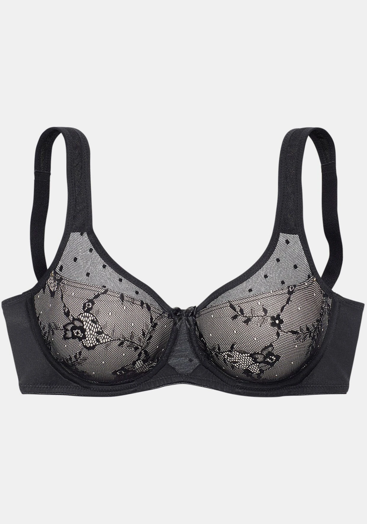 Femininer Minimizer-BH für eine optisch verkleinerte Brust. Cups rundherum aus feiner, floraler Spitze. Leicht wattierte Träger um die Schultern zu entlasten. Mit integrierten Formbügeln für einen sicheren Halt. Individuell verstellbare Träger und Rückenverschluss. Obermaterial: 79% Polyamid, 15% Polyester, 6% Elasthan.