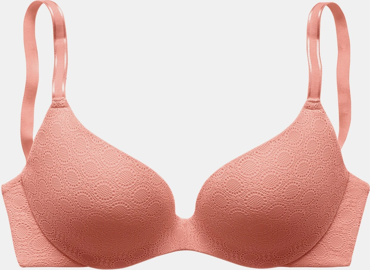 Klassischer Push-up-BH mit eingearbeiteten Kissen. Cups überzogen mit modischer Spitze (anteilig aus recyceltem Polyamid). Nahtlos vorgeformte Cups – nichts zeichnet sich ab. Träger und Rückenverschluss sind individuell verstellbar. Klassische Dessous. Bequeme Alltags-Dessous. Modische Dessous. Aus 66% recyceltes Polyamid, 17% Polyamid, 17% Elasthan, Obermaterial: 82% Polyamid, 18% Elasthan.