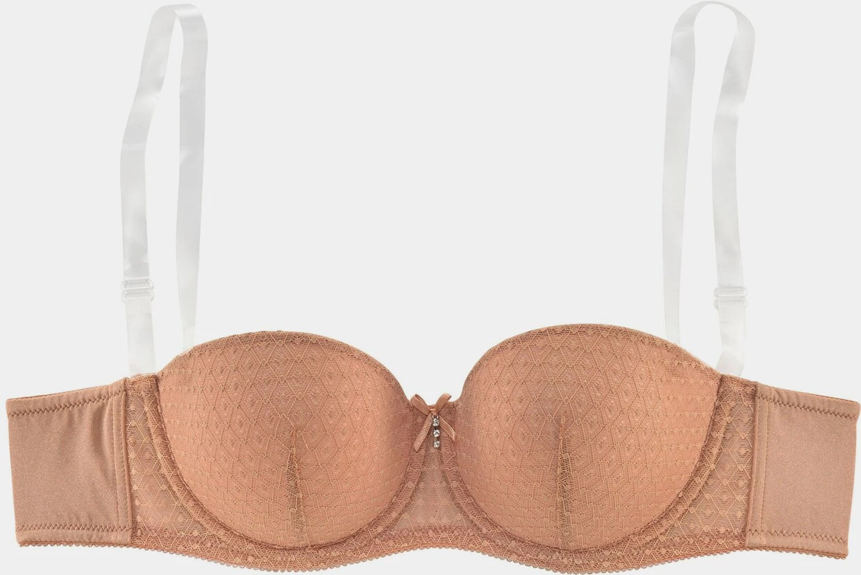 NUANCE: Schalen-BH mit transparenten, abnehmbaren Trägern. 2 Tragevarianten: Mit Trägern, ohne Träger. Mit Formbügel und nahtlos vorgeformten, leicht gefütterten Cups. Cups mit grafischer Jacquardspitze überzogen. Dekorative Schleife in der vorderen Mitte. Rutschfest durch eingearbeitete Silikonbänder. Träger und Rückenverschluss verstellbar. Sexy Dessous. Spitzen-Dessous. Romantische Dessous. Verspielte Dessous. Aus 61% Polyester, 34% Polyamid, 5% Elasthan.