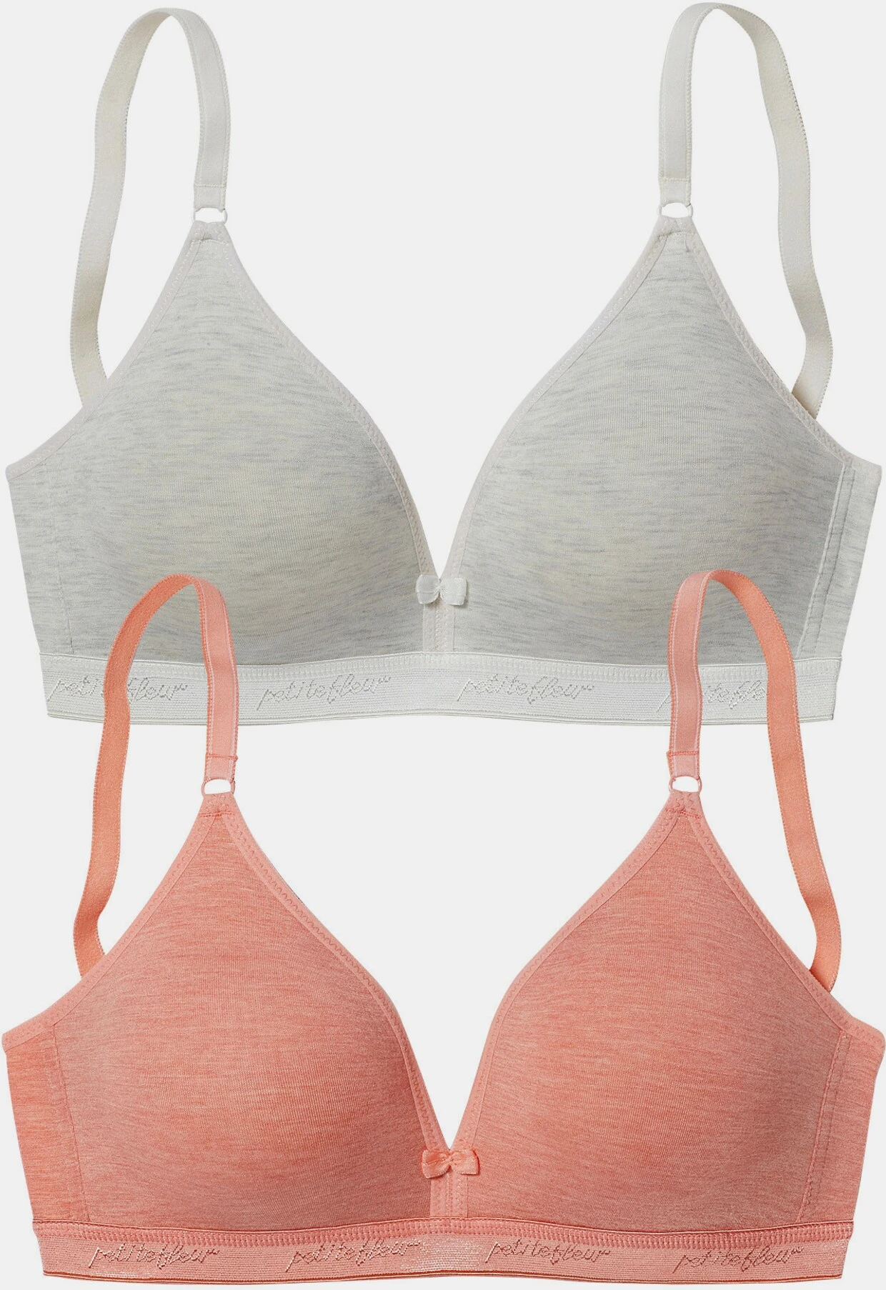 Bequemer Bralette-BH im attraktiven Doppelpack von Petite Fleur. Ohne Bügel, mit nahtlos vorgeformten Cups und weichen Kanten. Unterbrustgummi mit eingewebtem Logo. Klassische Dessous. Bequeme Alltags-Dessous. Modische Dessous. Aus 94% Modal, 6% Elasthan