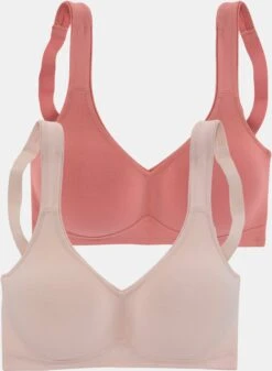 Toller Basic BH ohne Bügel von Petite Fleur im Doppelpack. Die nahtlos vorgeformten, gemoldeten Cups schmiegen sich sanft an und sind ideal für eng anliegende Kleidung, da sich nichts abzeichnet. Die breiteren Träger geben verlässlichen Halt und verhindern ein unangenehmes Einschneiden auf den Schultern. Mit steigender Größe ist die Passform auf die jeweiligen besonderen Bedürfnisse abgestimmt, d.h. pro Größe wachsen auch die Rückteile und Verschlussbreiten mit. Für hohen Tragekomfort sorgen breitere Elastikbänder entlang der Kanten, die dank hochelastischer Nähte nicht einschneiden. Träger und Rückenverschluss sind verstellbar. Klassische Dessous. Bequeme Alltags-Dessous. Modische Dessous. Aus 95% Baumwolle, 5% Elasthan. BHs sind nicht trocknergeeignet, da die Versteller und Ringe durch die Hitze beschädigt werden und brechen.