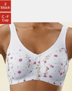 Entlastungs-BH im Doppelpack ohne Bügel in bequemer Passform. Die breiteren, leicht gefütterten Träger verhindern lästiges Einschneiden an den Schultern und entlasten. Die Träger sind in der Länge verstellbar, im Rücken 3fach Häkchenverschluss. Der Entlastungs-BH ist aus 70% Polyamid, 30% Elasthan. Klassische Dessous. Bequeme Alltags-Dessous. Modische Dessous. BHs sind nicht trocknergeeignet, da die Versteller und Ringe durch die Hitze beschädigt werden und brechen.