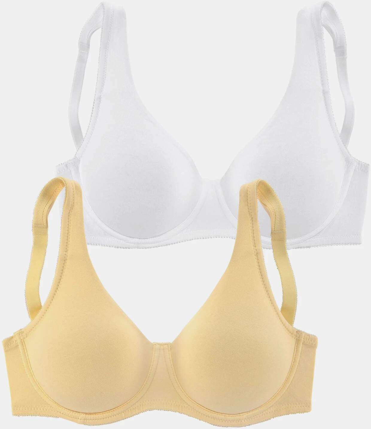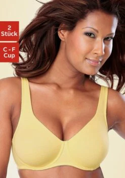 Dieser Minimizer-BH von Petite Fleur bietet hohen Tragekomfort und Funktionalität. Die Schnittführung ist so ausgelegt, dass sie den Busen optisch etwas kleiner macht. Um einen guten Halt zu gewährleisten sind die Cups auf Bügel gearbeitet. Komfortable, breite Träger und der mittelhohe Steg sorgen für eine perfekte Passform. Die nahtlosen Cups lassen ihn unter eng anliegender Kleidung unsichtbar werden und machen ihn somit zum idealen T-Shirt-BH für den Alltag. Fühlen Sie sich rundum wohl in diesem Basic-BH aus weicher Baumwolle. Im attraktiven Doppelpack erhältlich. Träger und Rückenverschluss verstellbar. Klassische Dessous. Bequeme Alltags-Dessous. Modische Dessous. Der Minimizer-BH ist aus 90% Baumwolle, 10% Elasthan. BHs sind nicht trocknergeeignet, da die Versteller und Ringe durch die Hitze beschädigt werden und brechen.