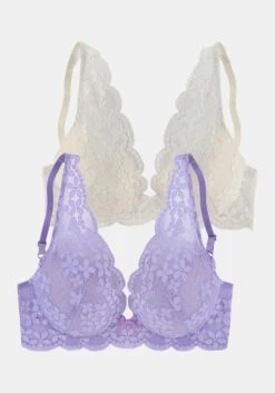 Petite Fleur: Push-up-BH im 2er-Pack. In High-Apex-Schnittform auf Formbügel gearbeitet. Mit herausnehmbaren Kissen für ein tolle Dekolletè. Rundum aus schöner Spitze. Schleifenaccessoire in der vorderen Mitte. Träger und Rückenverschluss verstellbar. Sexy Dessous. Spitzen-Dessous. Romantische Dessous. Verspielte Dessous. Aus 60% Polyamid, 35% Polyester, 5% Elasthan.
