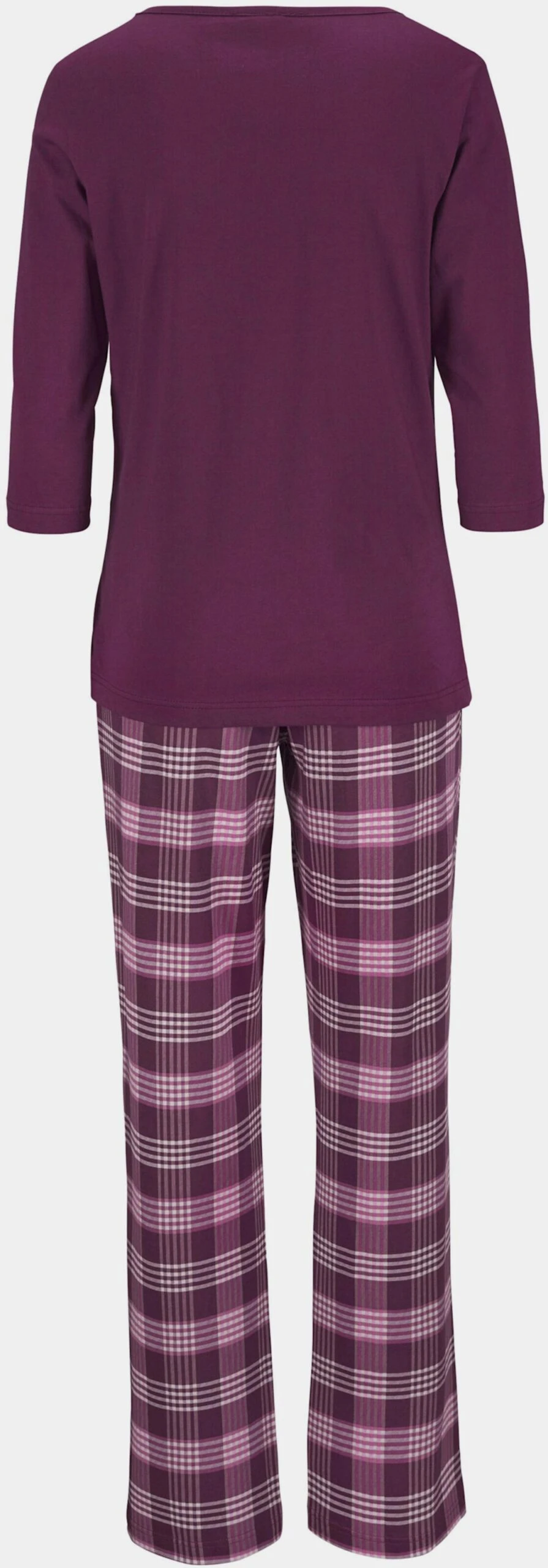 Shirt mit ¾ Ärmel, V-Ausschnitt und Raffung in der vorderen Mitte. Lange, karierte Hose mit elastischem Tunnelzugbund. Single-Jersey aus 100% Baumwolle (mit dem Kauf unterstützen Sie den nachhaltigen Baumwollanbau von Cotton made in Africa).