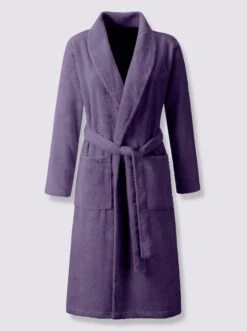 Bademantel aus kuscheligem Flauschfrottee. Auf der Außenseite sorgt der Polyester-Anteil für einen weichen Griff. Innen verwöhnt saugfähige Baumwolle die Haut. Schalkragen, Bindegürtel und aufgesetzte Taschen.