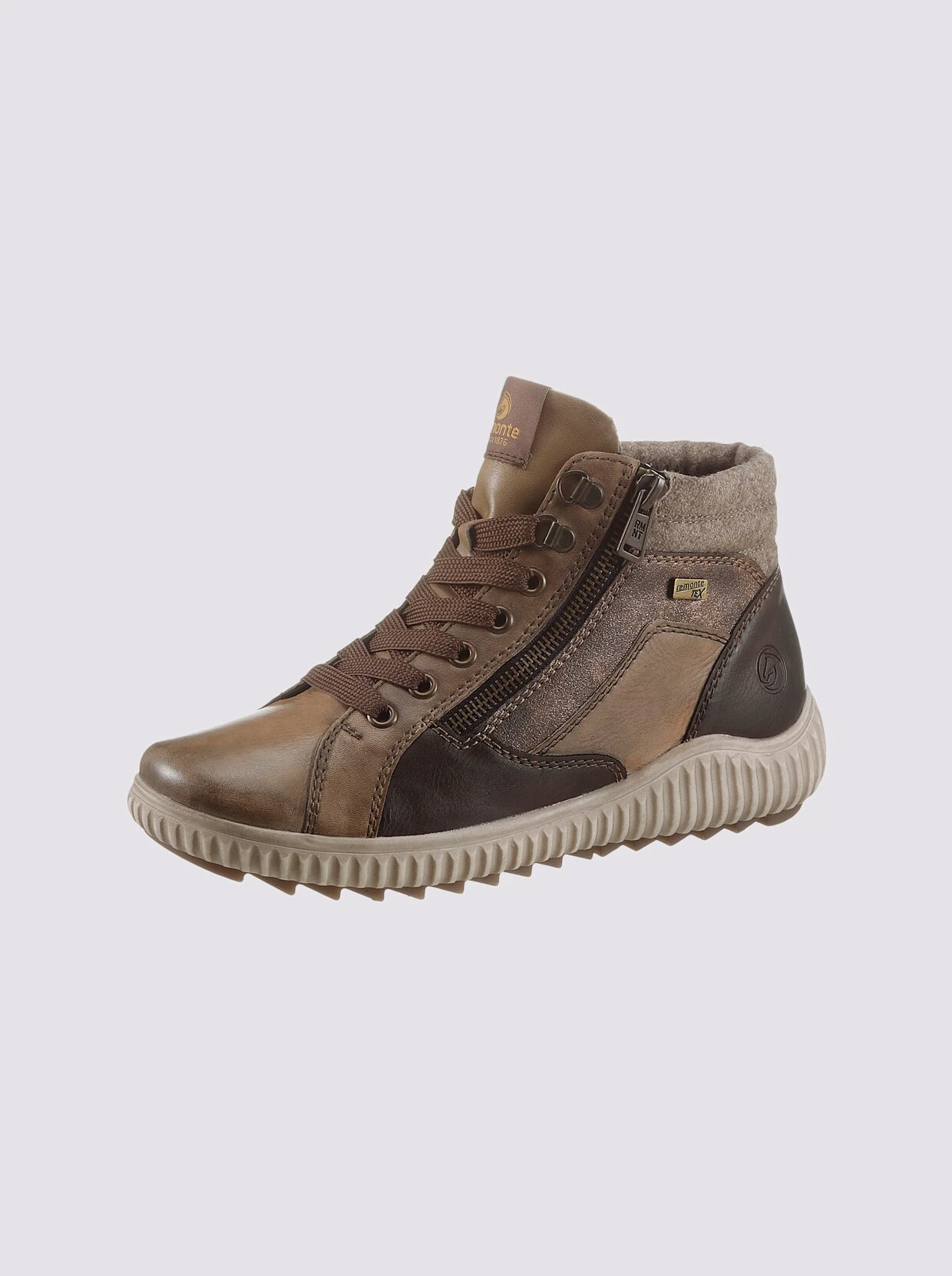 Der Schnürschuh von Remonte Tex aus Textil wird zum neuen Liebling in jedem Schuhschrank! Seitlicher Reißverschluss. Wasserabweisend. Innen aus Textil. Wärmend und weich gepolstert. Wechselfußbett. Trittdämpfende Laufsohle aus TR. Absatzhöhe ca. 35 mm. Weite G.