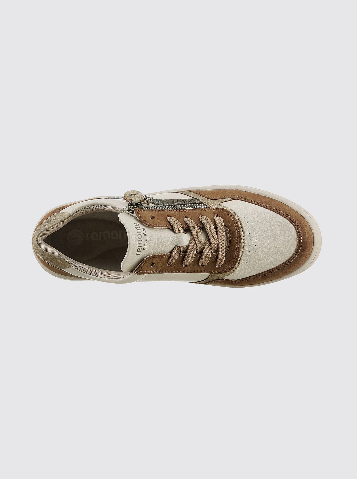 Remonte – Qualität aus Tradition: Schnürschuh im tollen Mix aus Leder-Imitat und Nubukleder, innen aus Textil. Mit seitlichem Reißverschluss. Weich gepolsterte Innensohle für einen sanften Auftritt. Mit Wechselfußbett. PU-Laufsohle mit ca. 40 mm Absatz. Weite F.
