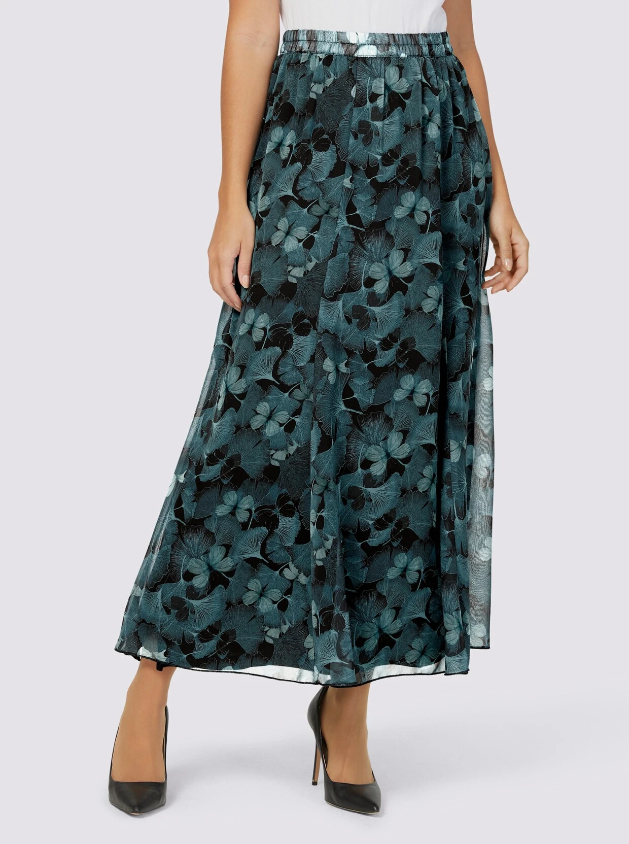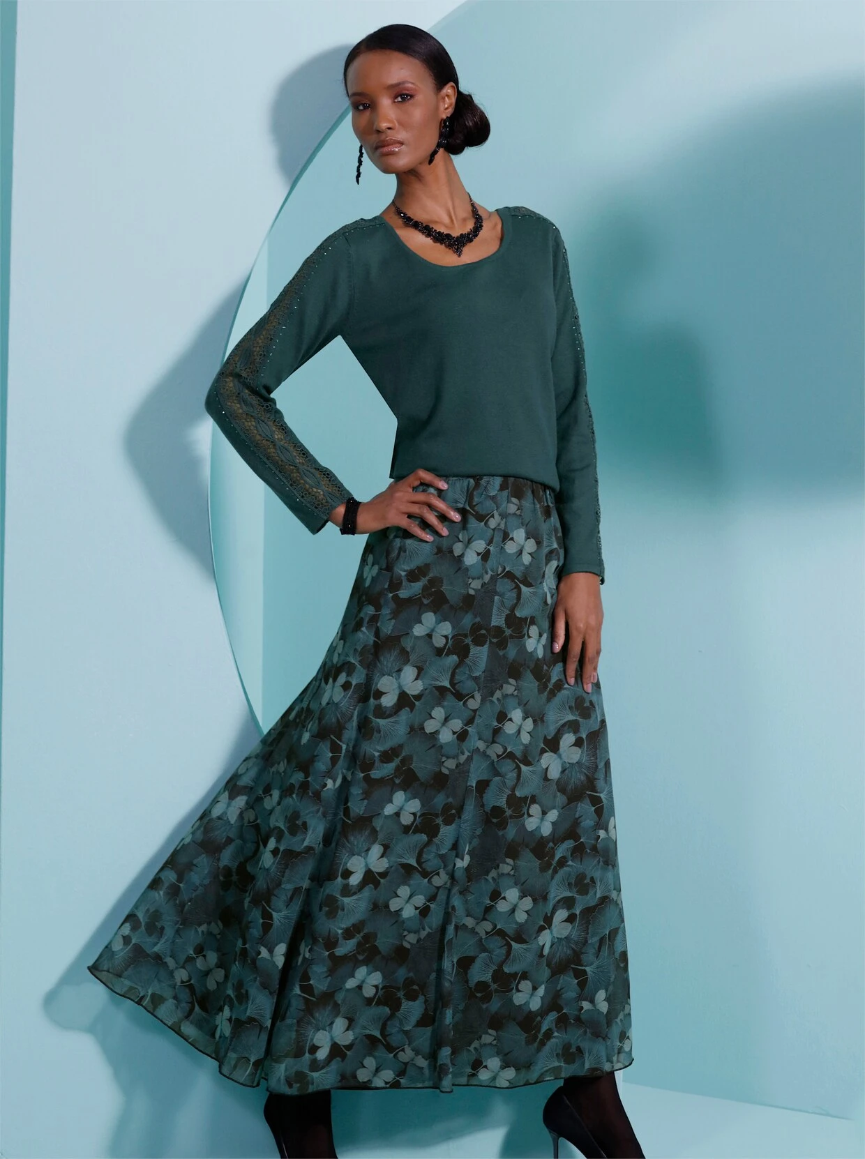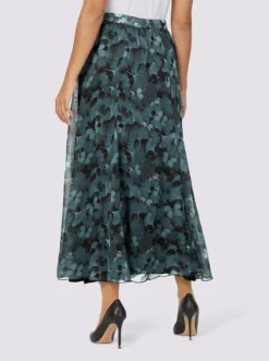 Wunderschön schwingender Rock in ausgestellter A-Linie. Die fließende Qualität ist edel bedruckt und dank Viskosefutter angenehm zu tragen. Mit komfortablem Rundum-Dehnbund.