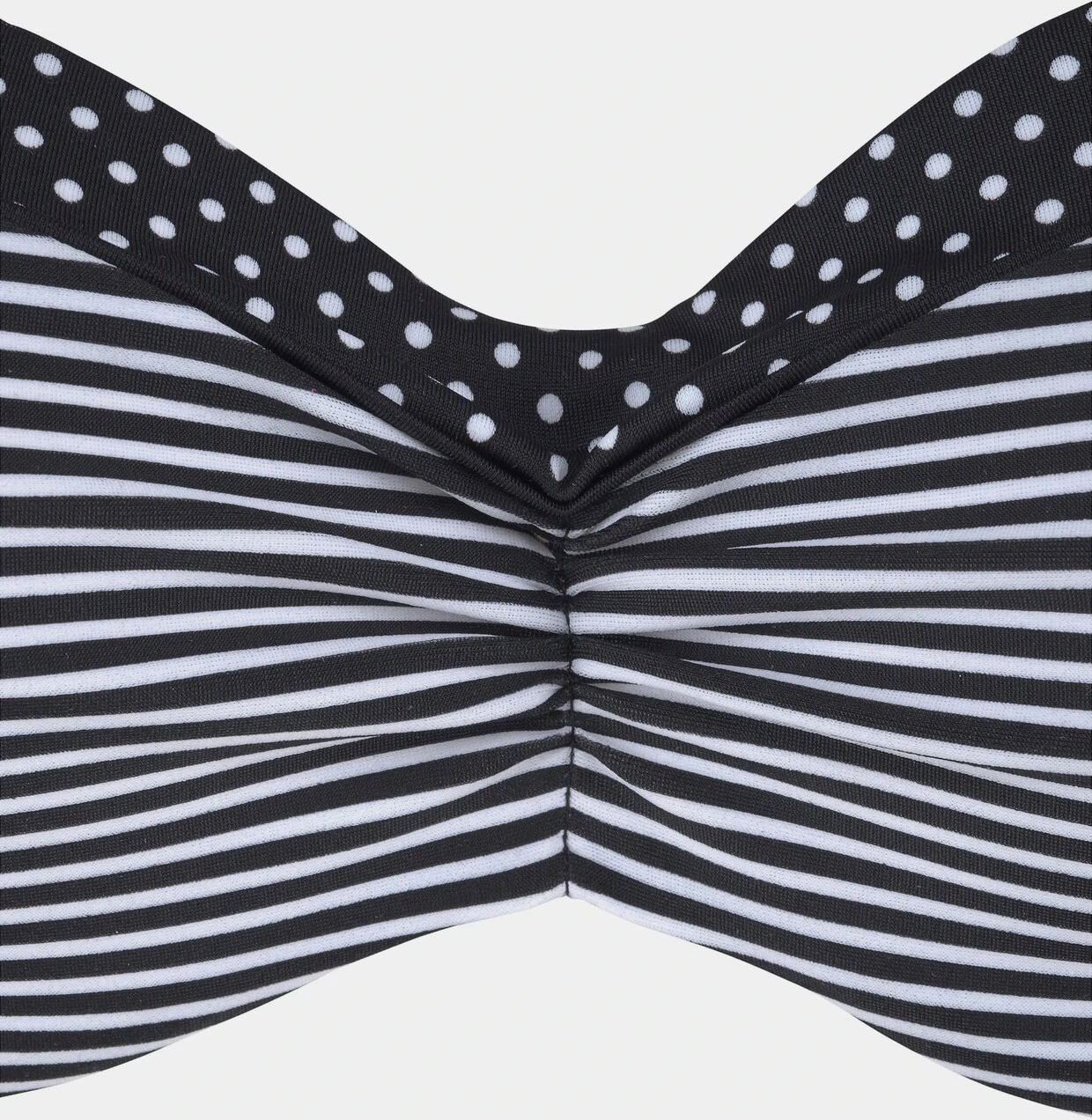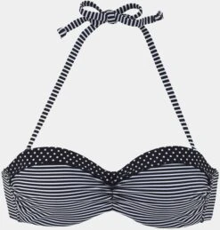 Im modischen Mix mit Punkte- und Streifenprints. Mit wattierten Cups und seitlichen Stäbchen für eine schönes Dekolleté mit guten Halt. Abnehmbare Träger, im Nacken zu binden. Top im Rücken zu schließen.