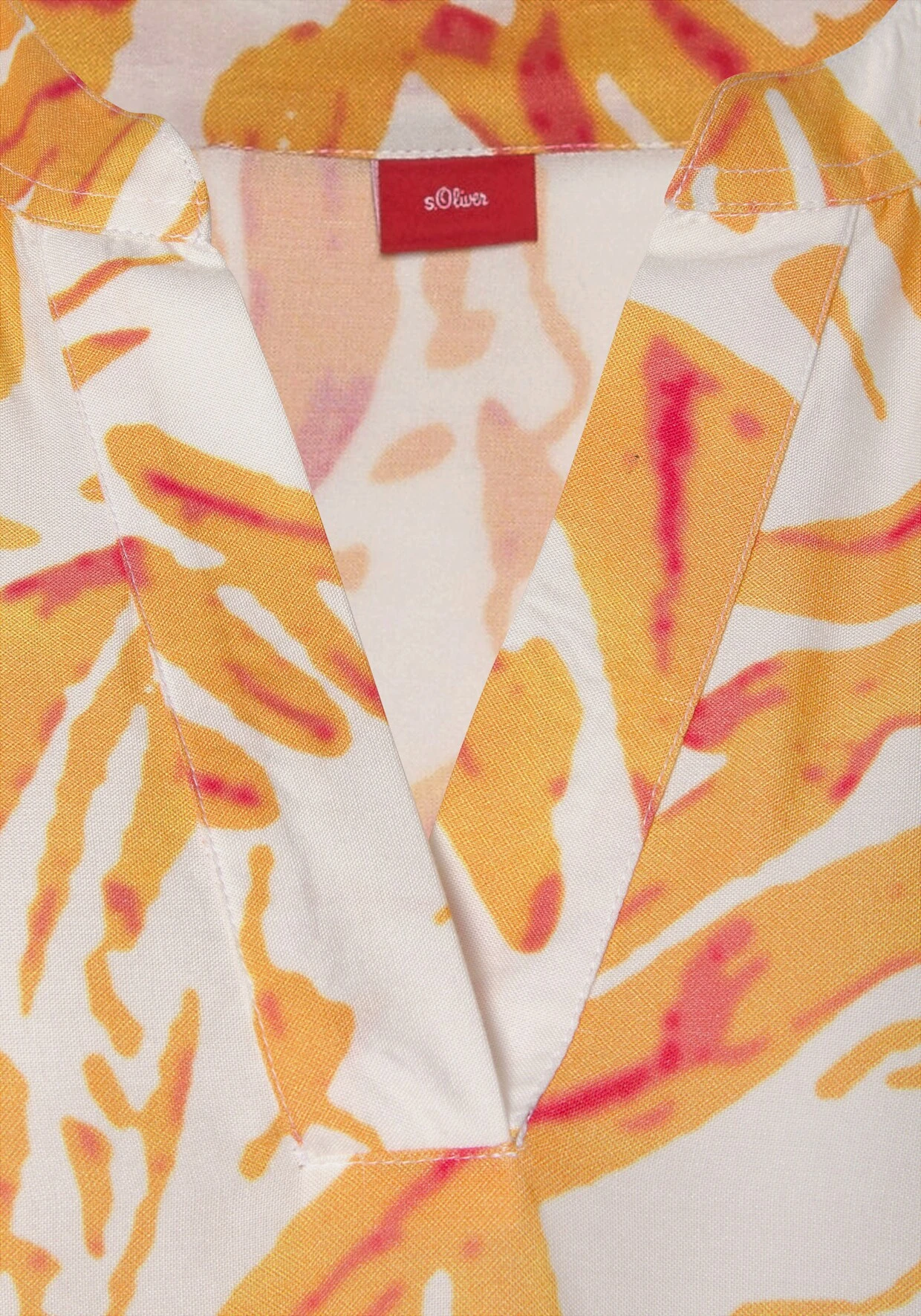 S.Oliver Blusenkleid In Orange-creme-bedruckt