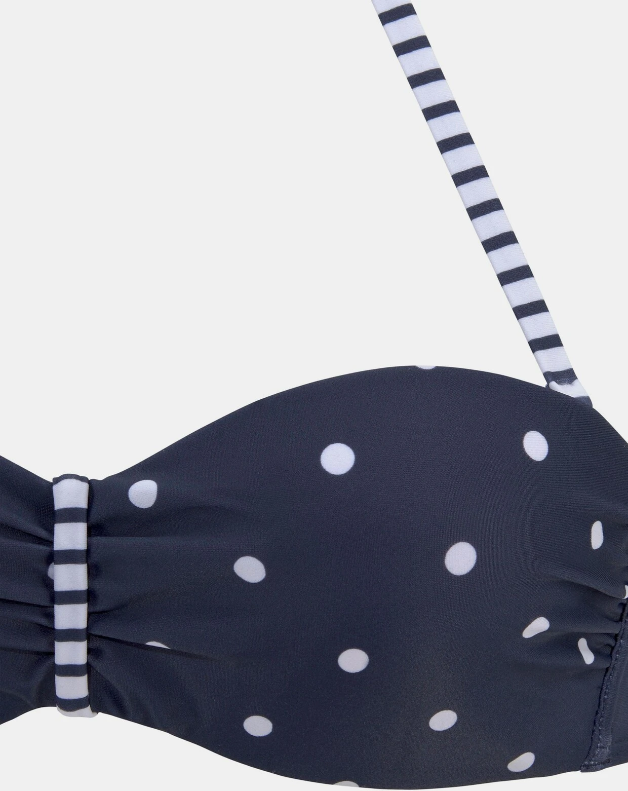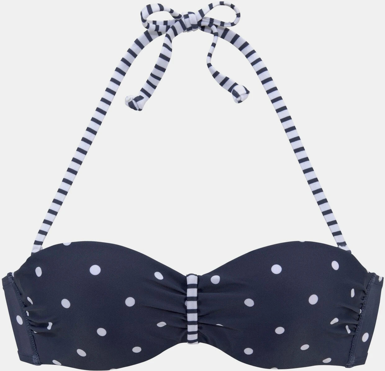 Bügel-Bandeau-Top von S.Oliver Beachwear. Modisches Punkte-Dsign. Wattiertes Cup mit abnehmbaren Trägern. Obermaterial: 80% Polyamid , 20% Elasthan. Wattierung: 100% Polyester