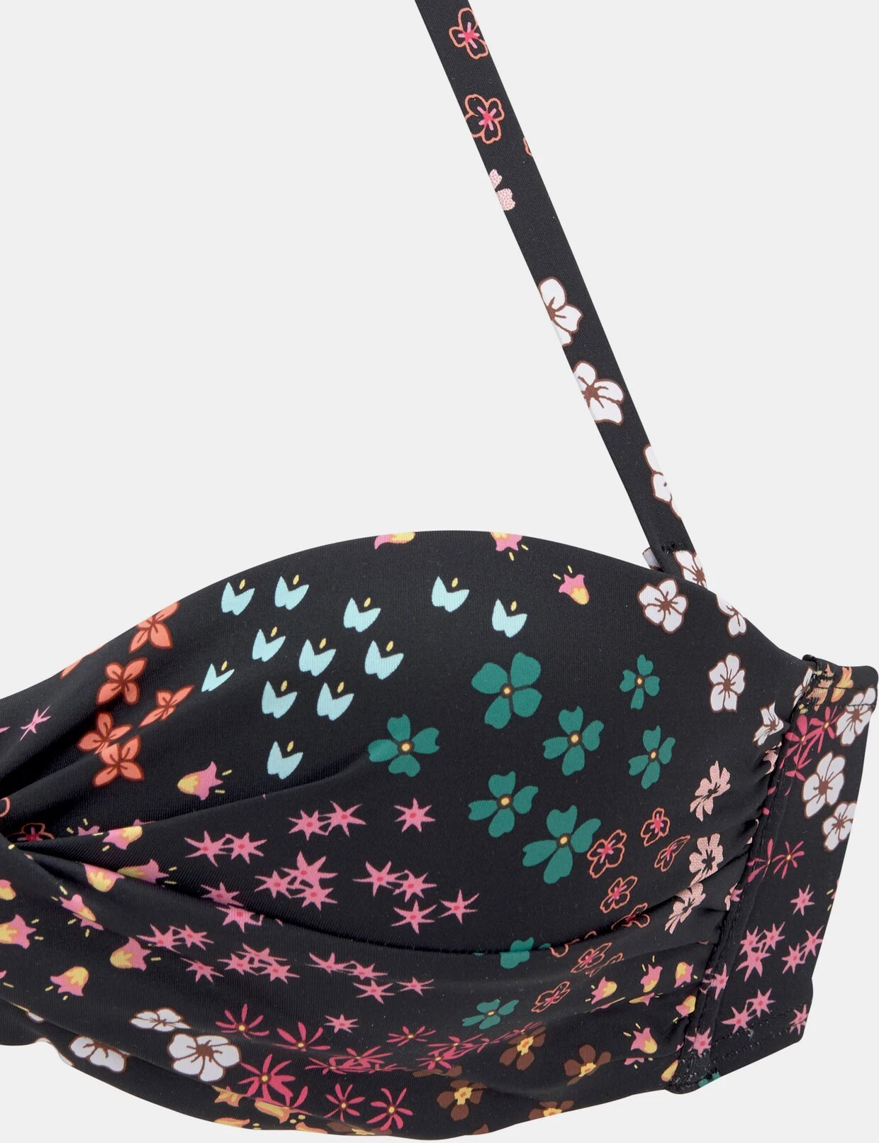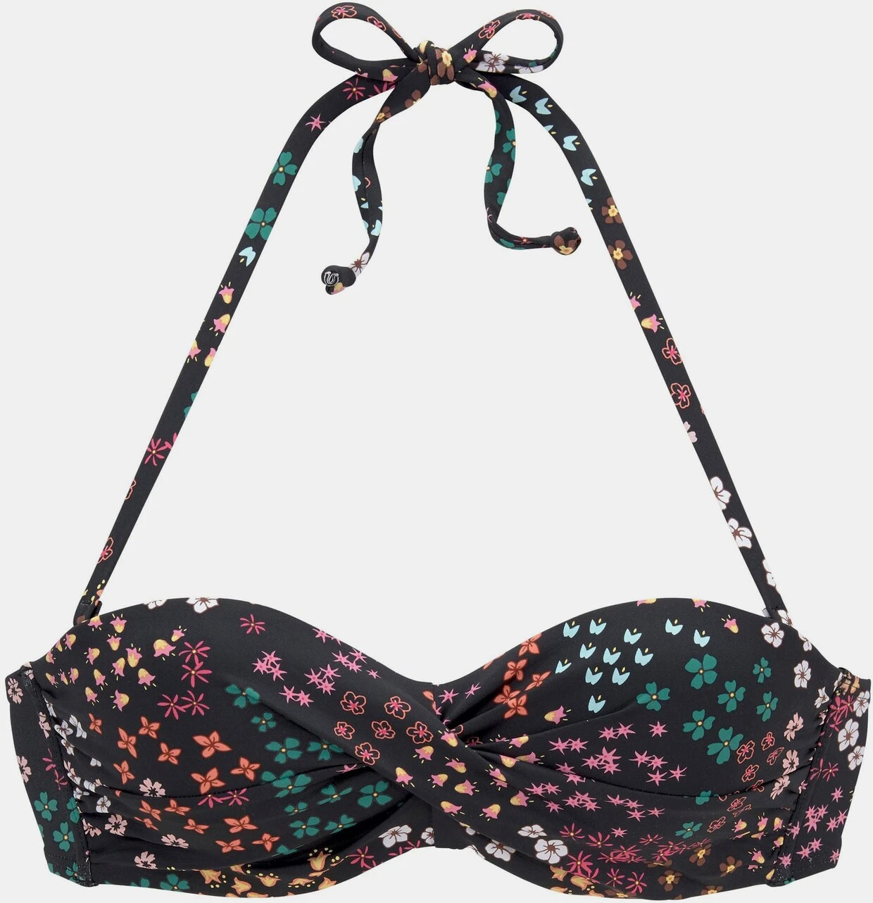 Bügel-Bandeau-Bikinitop von s.Oliver mit floralem Alloverprint. Neckholder zum Abnehmen. Seitenträger mit Verschluss im Rücken. Wattierte Cups mit herausnehmbaren Kissen. Aus der Mix-Kini-Serie. Angenehme Qualität.
