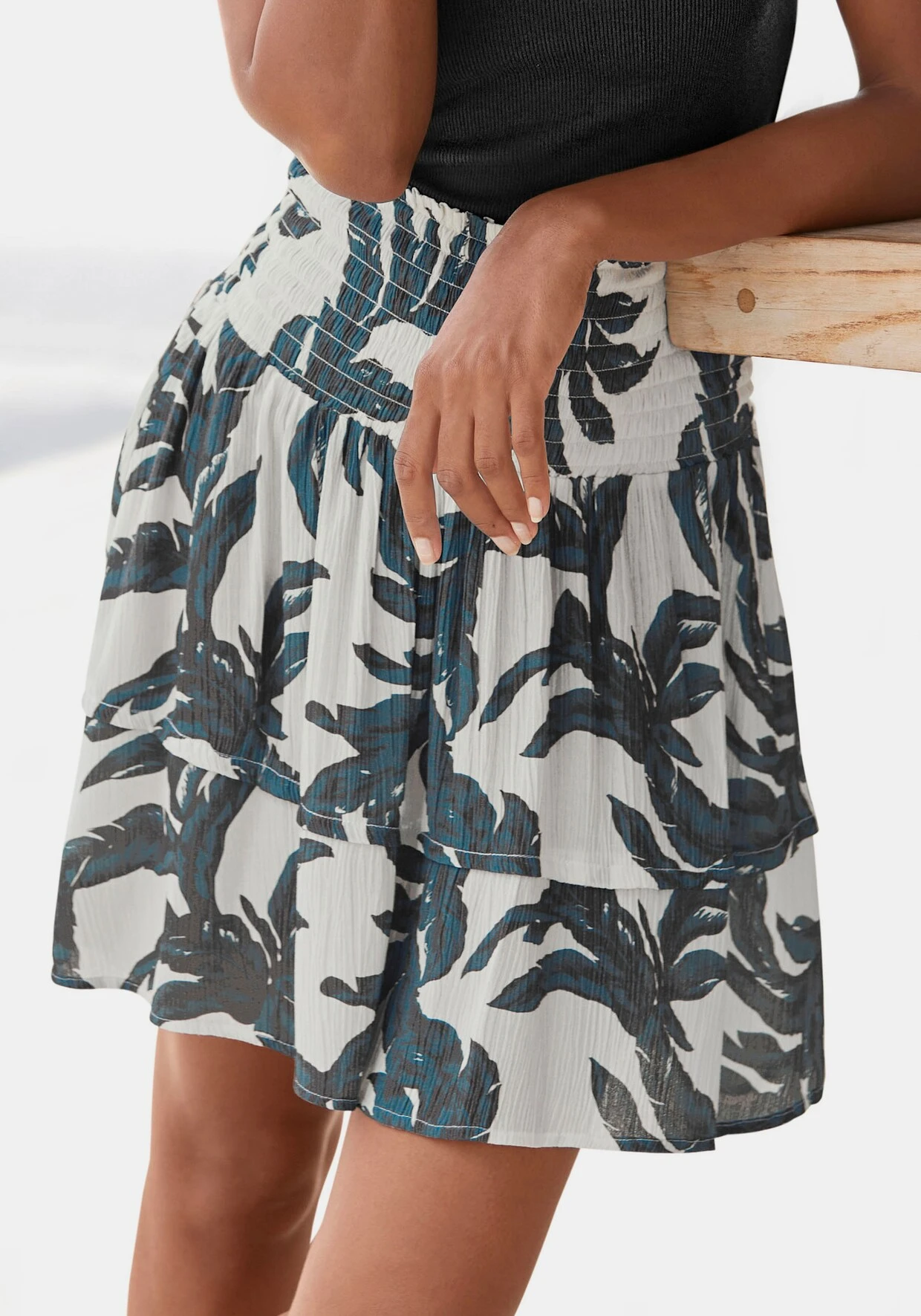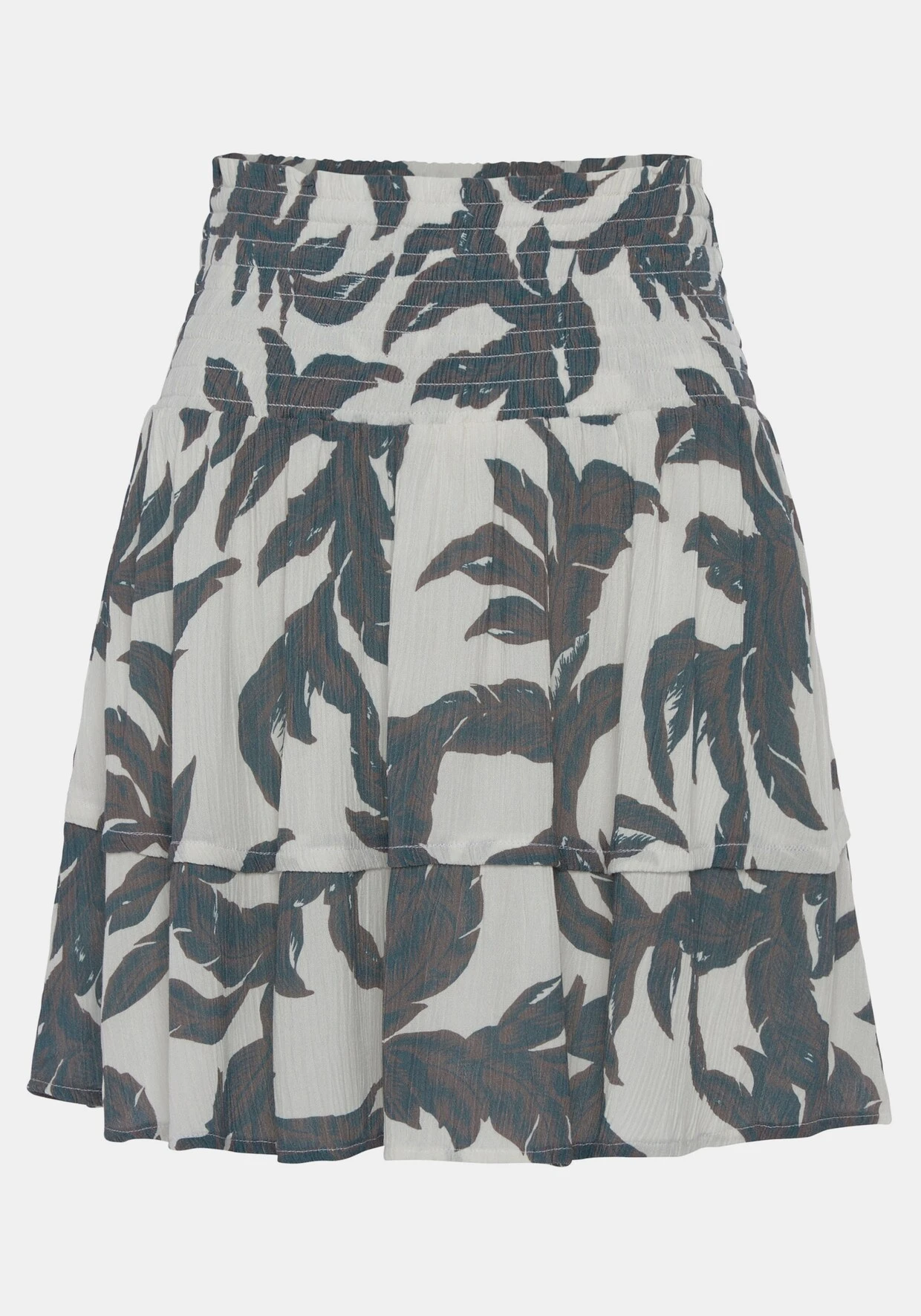 Kurzer Volantrock von S.Oliver mit Alloverprint – jede Teil ein Unikat. Extrabreiter Smokbund. Leicht ausgestellte Passform. Toll zu unifarbenen Oberteilen. Gekreppte, weiche Viskosequalität.