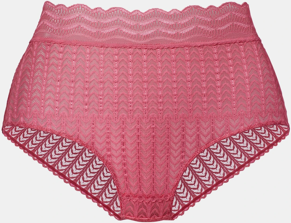 Femininer High-Waist-Slip mit breitem Bund in gewellter Optik. Rundherum aus graphischer, dezent transparenter Spitze. Hohe und abdeckende Passform für ein tolles Tragegefühl. Mit eingearbeitetem Baumwollzwickel. Mit passenden BH’s aus der gleichen Serie erhältlich. Aus 90% Polyamid, 10% Elasthan,