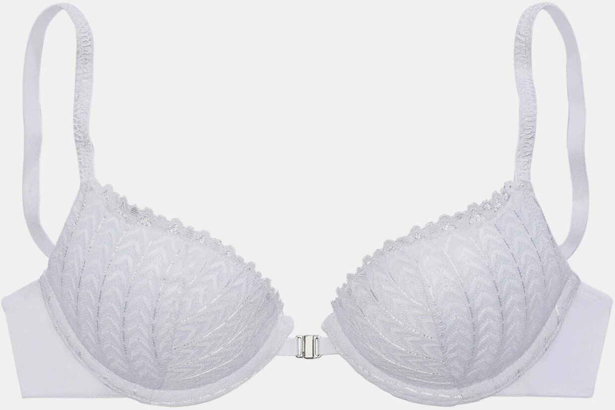 Femininer Push-up-BH mit Formbügel und herausnehmbaren Kissen. Cups aus floraler Spitze und dezent transparentes Soft Mesh an den Seiten. Praktischer Vorderverschluss vorn für ein angenehmes an- und ausziehen. Mit individuell verstellbaren Trägern. Passende Unterteile aus der gleichen Serie erhältlich. Sexy Dessous. Spitzen-Dessous. Romantische Dessous. Verspielte Dessous. Obermaterial: 60% Polyamid, 35% Polyester, 5% Elasthan.