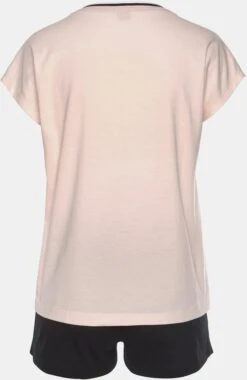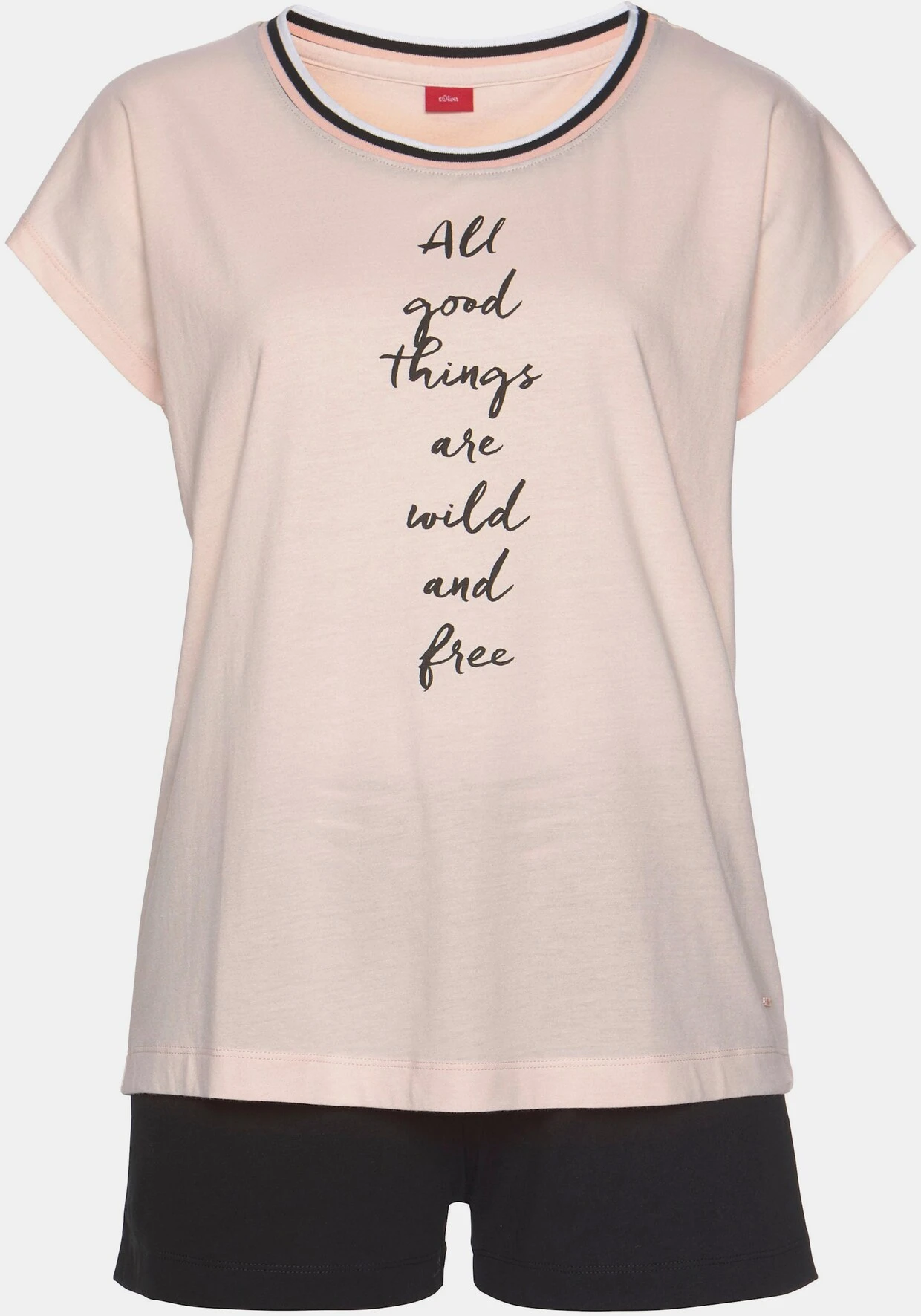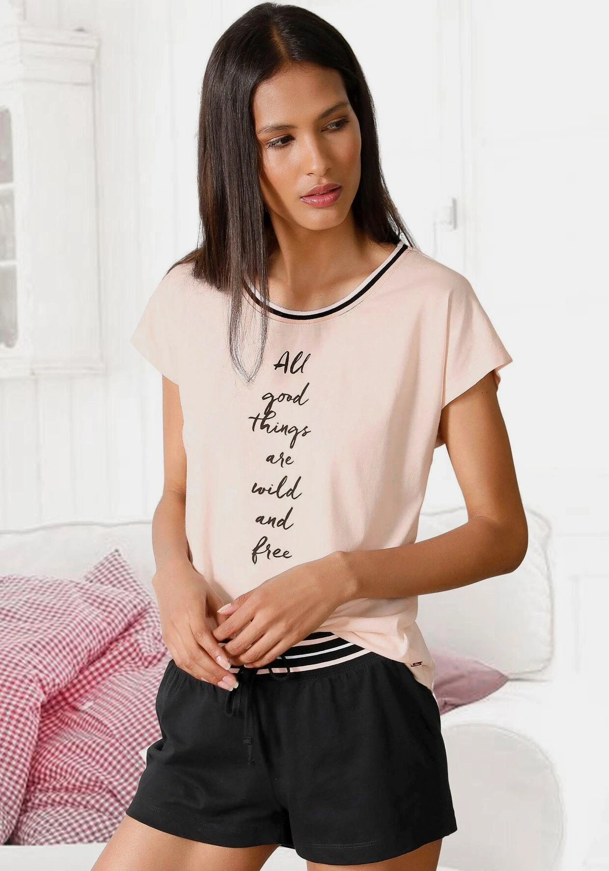 Kurzer Damenpyjama. Kurzärmeliges Schlafanzug Oberteil mit Frontprint und Rundhalsausschnitt. Kurze Pyjamahose mit elastischem Tunnelzug. Angenehme Baumwollqualität.
