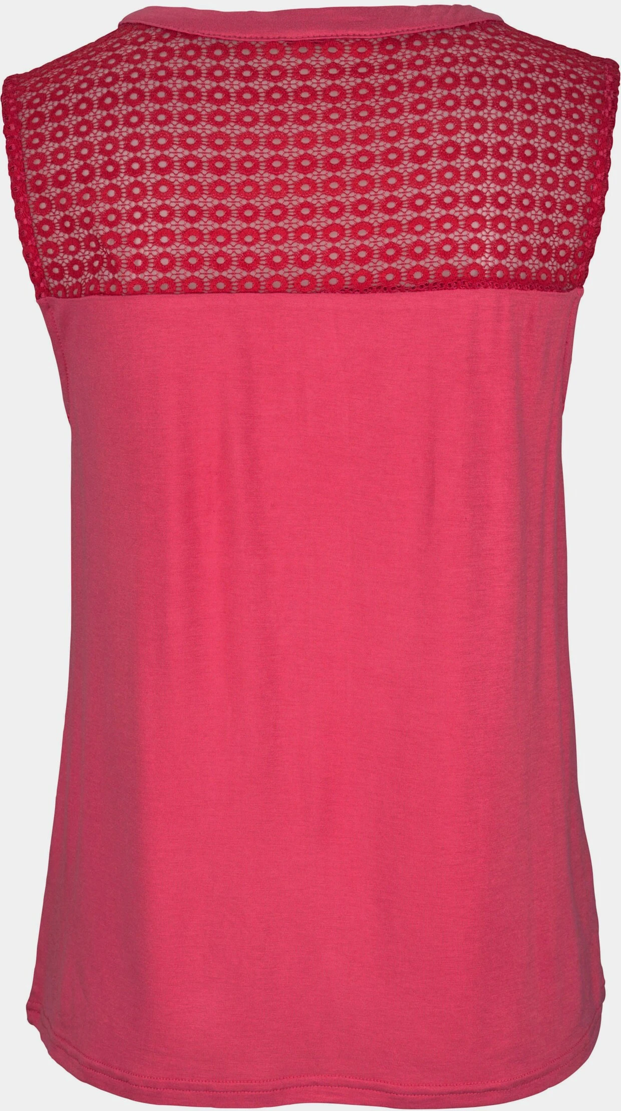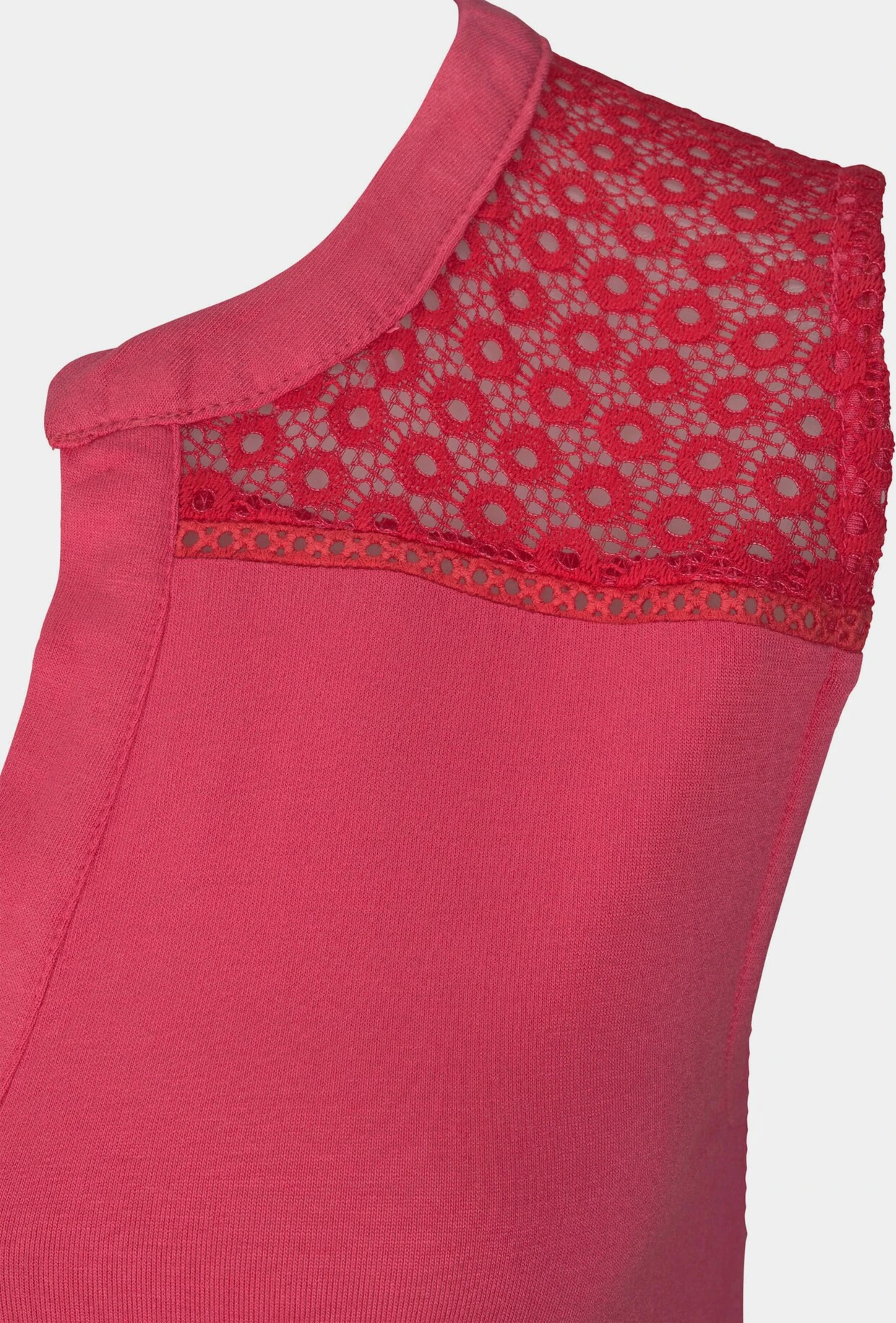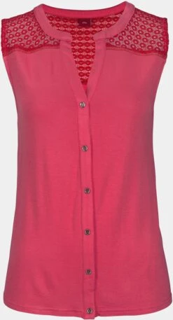 Mit schöner Zierknopfleiste vorn und Spitzeneinsatz an den Schultern und am oberen Rücken. Kleine Logostickerei am Saum. Länge ca. 60 cm. Aus 95% Viskose, 5% Elasthan. Spitze: 95% Polyamid, 5% Elasthan.