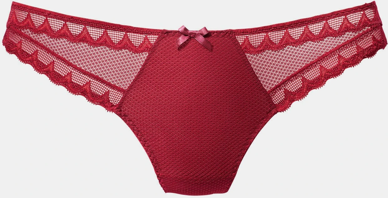 Modischer String aus graphischer Spitze. Mit kleiner Zierschleife in der vorderen Mitte. Vorne aus blickdicht unterlegtem Meshmaterial. Passende BH’s aus der gleichen Serie erhältlich. Mit eingearbeitetem Baumwollzwickel. Aus 90% Polyamid, 10% Elasthan.