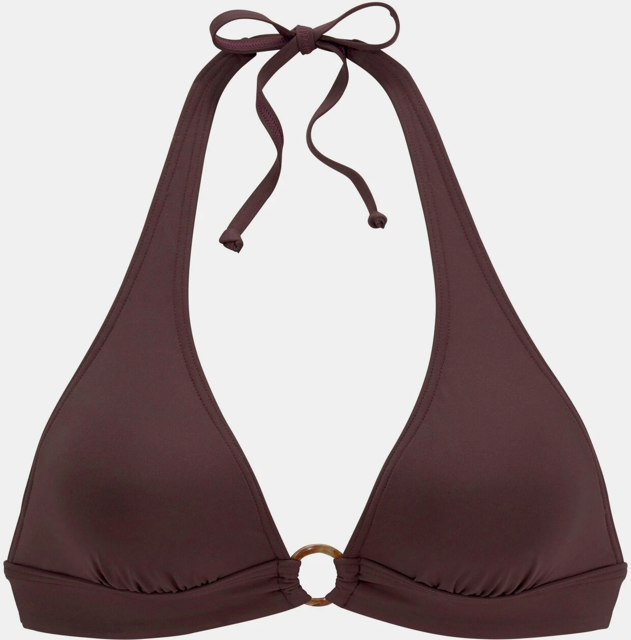 Triangel-Top von S.Oliver Beachwear mit herausnehmbaren Softcups. Zierring in Horn-Optik in der vorderen Mitte.