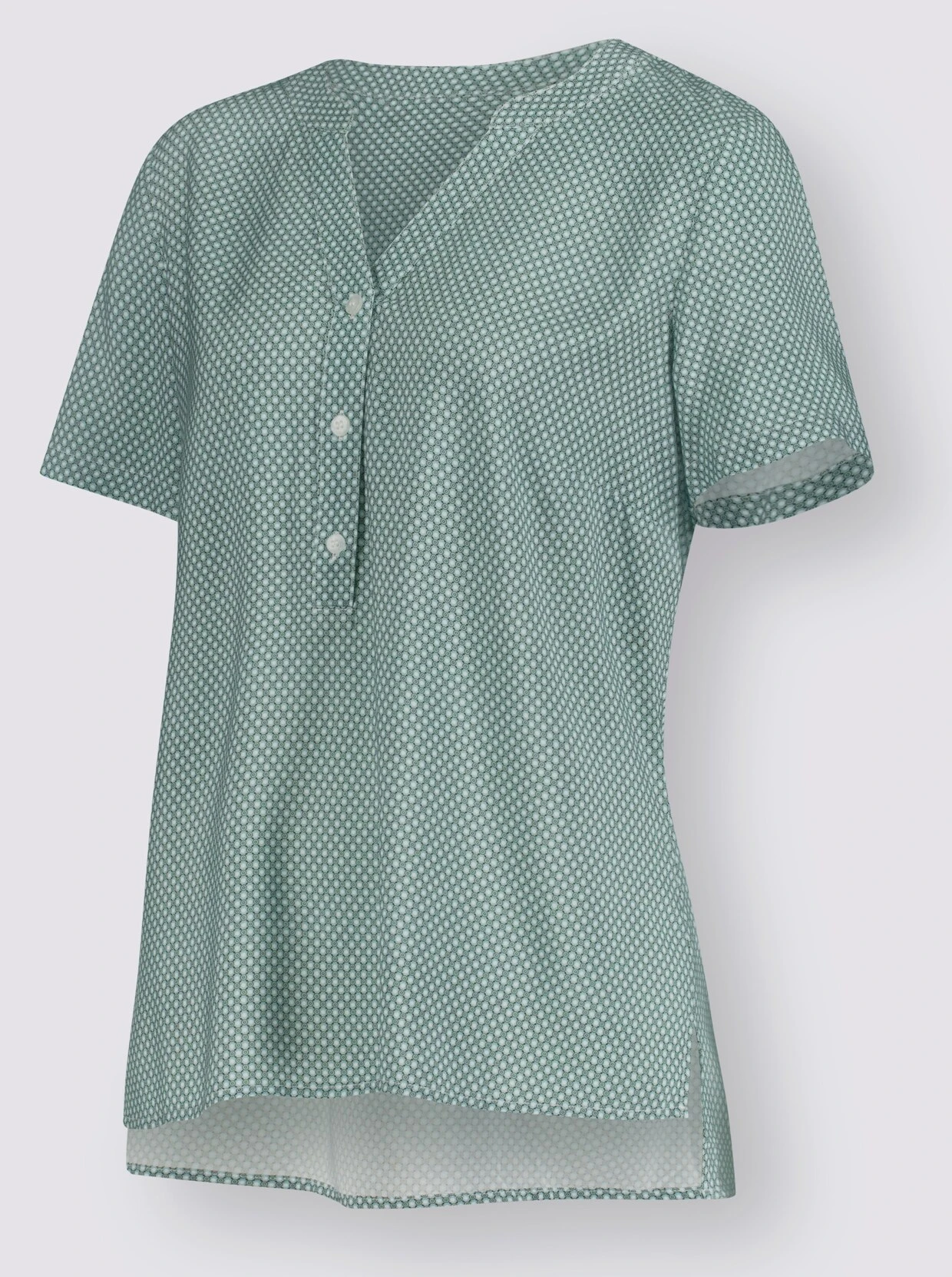 Schlupfbluse In Kalkmint-graphit-bedruckt