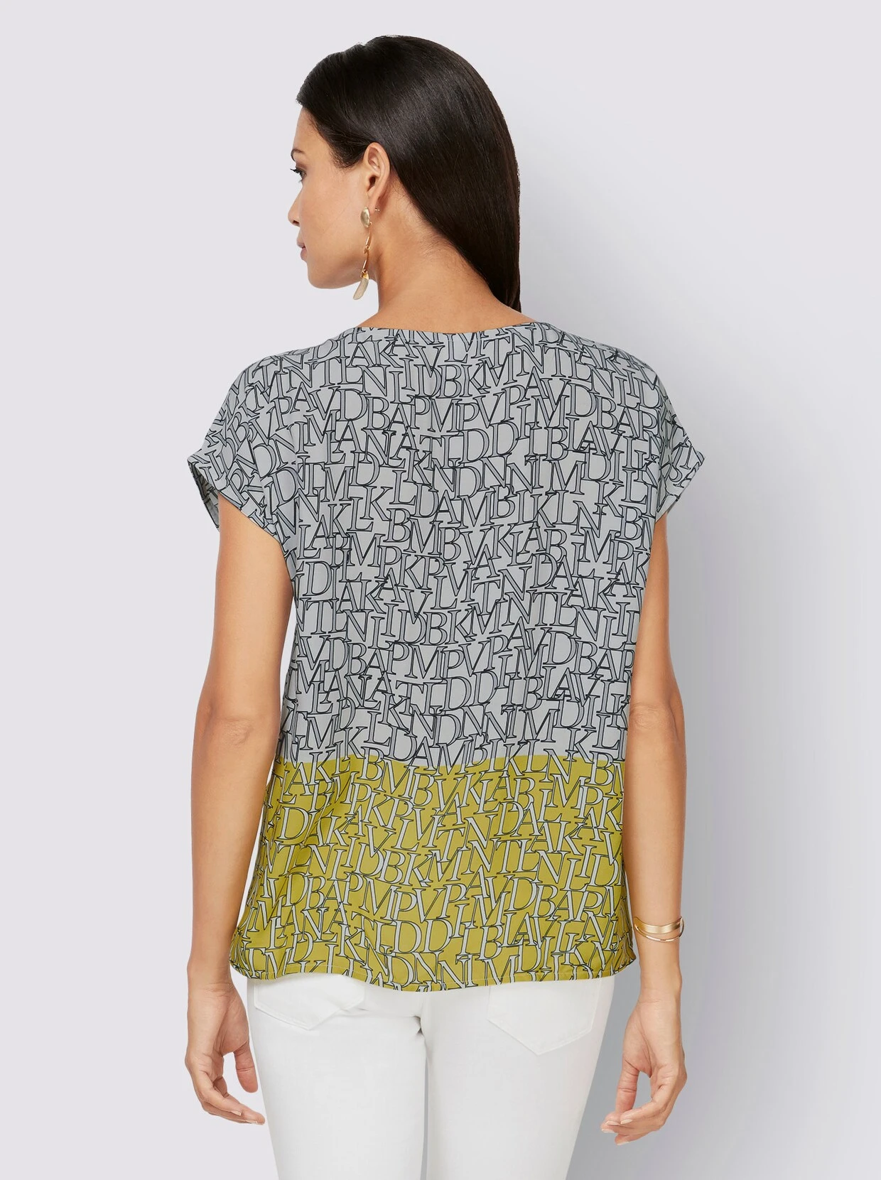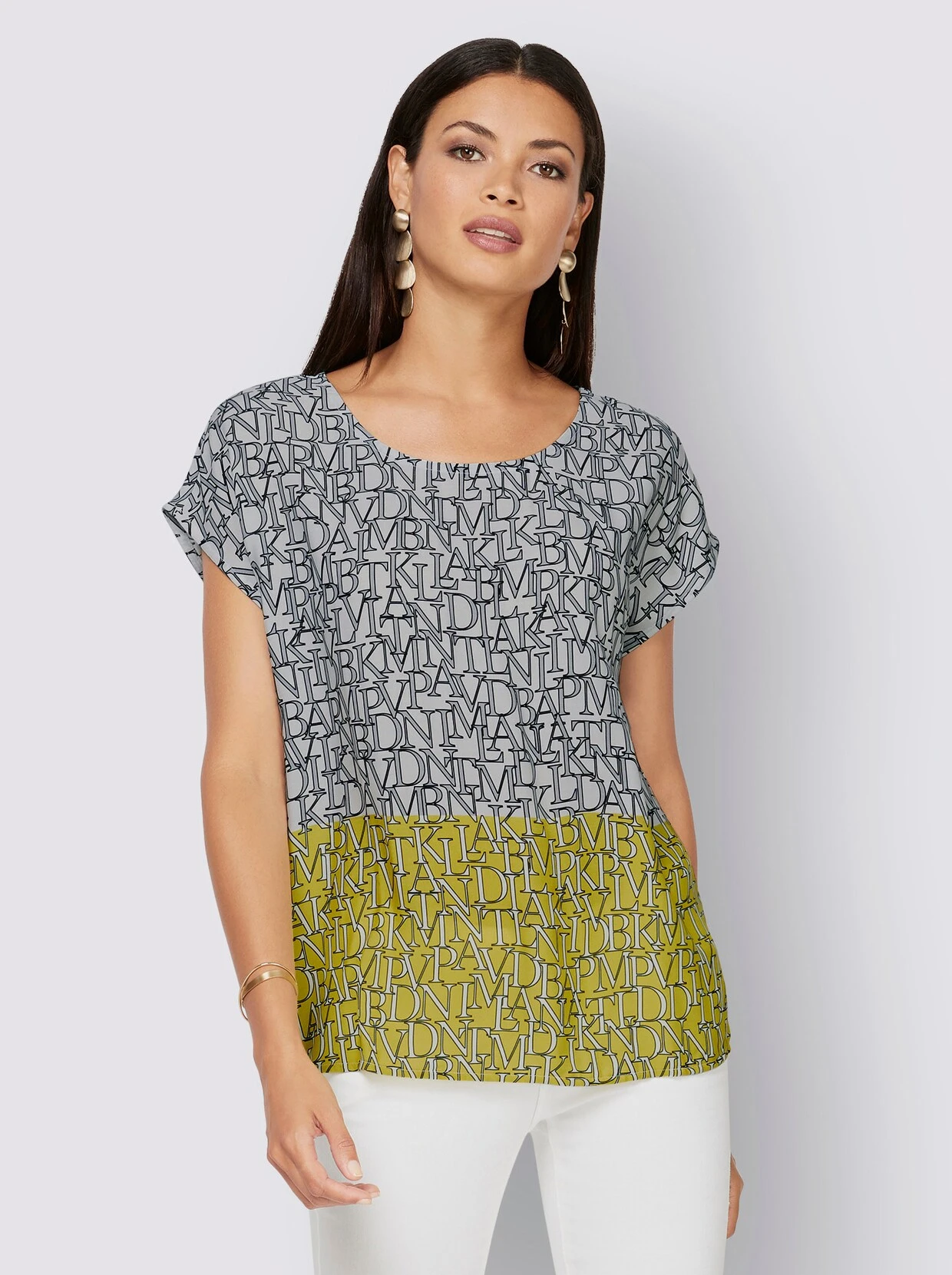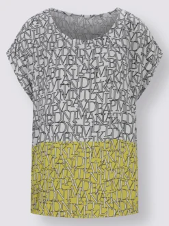 Schlupfbluse In Limone-steingrau-bedruckt
