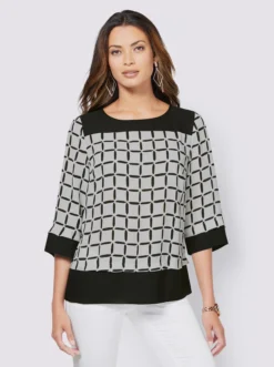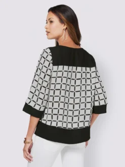 Schlupfbluse In Weiß-schwarz-bedruckt