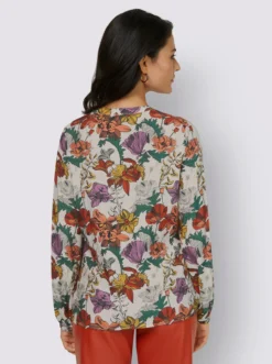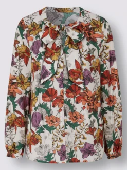 Die Bluse begeistert mit den besten Eigenschaften, die Viskose und Seide zu bieten haben. Geschmeidig softer Fall, luxuriös weiches Gefühl auf der Haut und edler Glanz. Hinzukommen ein modischer Schnitt mit Schluppe am Ausschnitt und ein harmonisches Floral-Dessin. Brustabnäher, Manschetten mit Schlingenknopfverschluss..