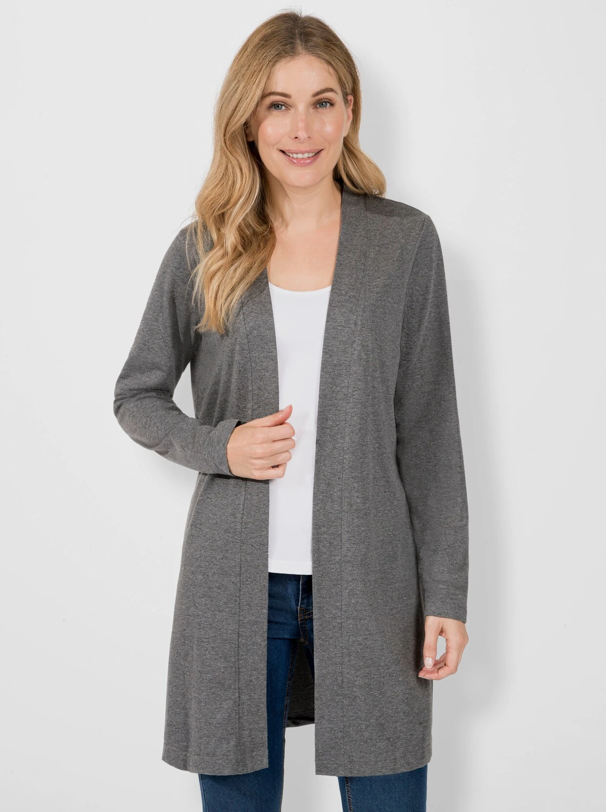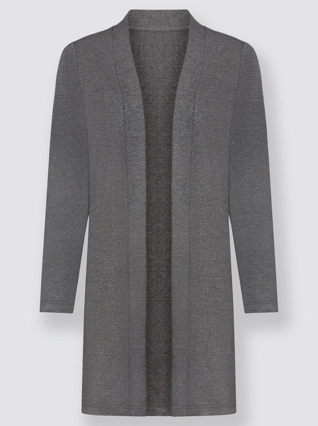Kombistark + figurschmeichelnd = unverzichtbar! Die Shirtjacke in lässig offener, kaschierender Longform ist der perfekte Begleiter für viele Gelegenheiten. Lange Ärmel. In trageangenehmem Material-Mix.