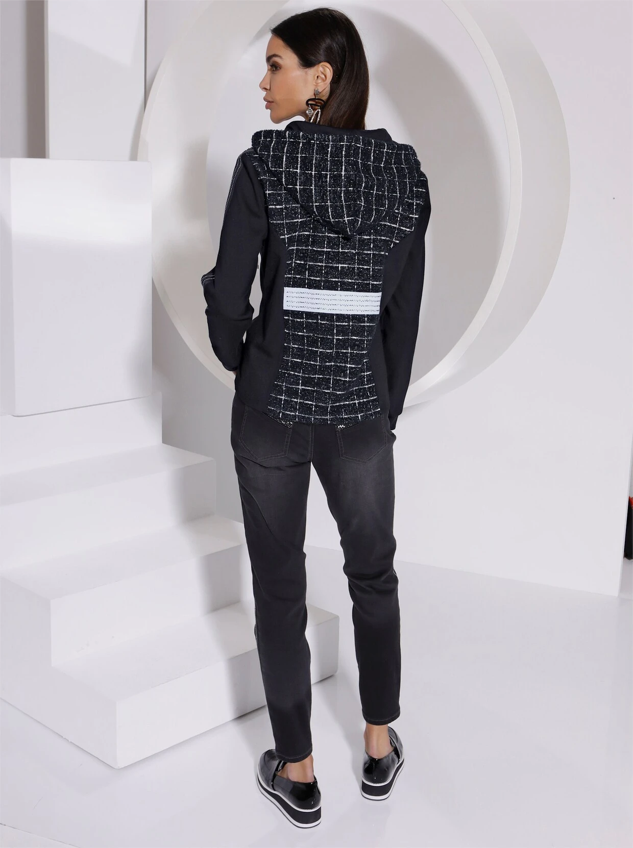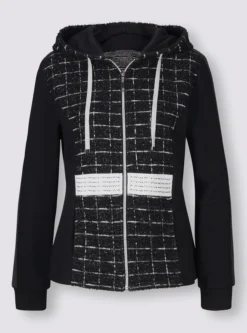 Die Shirtjacke überzeugt durch den trendigen Mix aus attraktivem Bouclé im Vorder- und Rückenteil und weichem Interlock an den Seiten und den Ärmeln. Auch die Kapuze mit Tunnelzug und Bindeband ist aus Boucle gefertigt und mit weichem Jersey gefüttert. Vorne und hinten zusätzlich mit horizontalem Interlock-Einsatz als Taillenbetonung. Durchgehender Reißverschluss. 2 Taschen verstecken sich in den Wiener Nähten. Zierband mit Glitzersteinchen entlang der langen Ärmel mit Bündchenabschluss. Unterstützt die Initiative Cotton made in Africa.