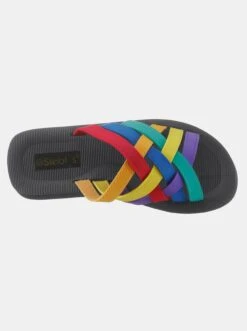 Bade-Pantolette mit anatomisch geformter Innensohle. Farbige, gekreuzte Bänder für ideale Passform. Besonders leicht.