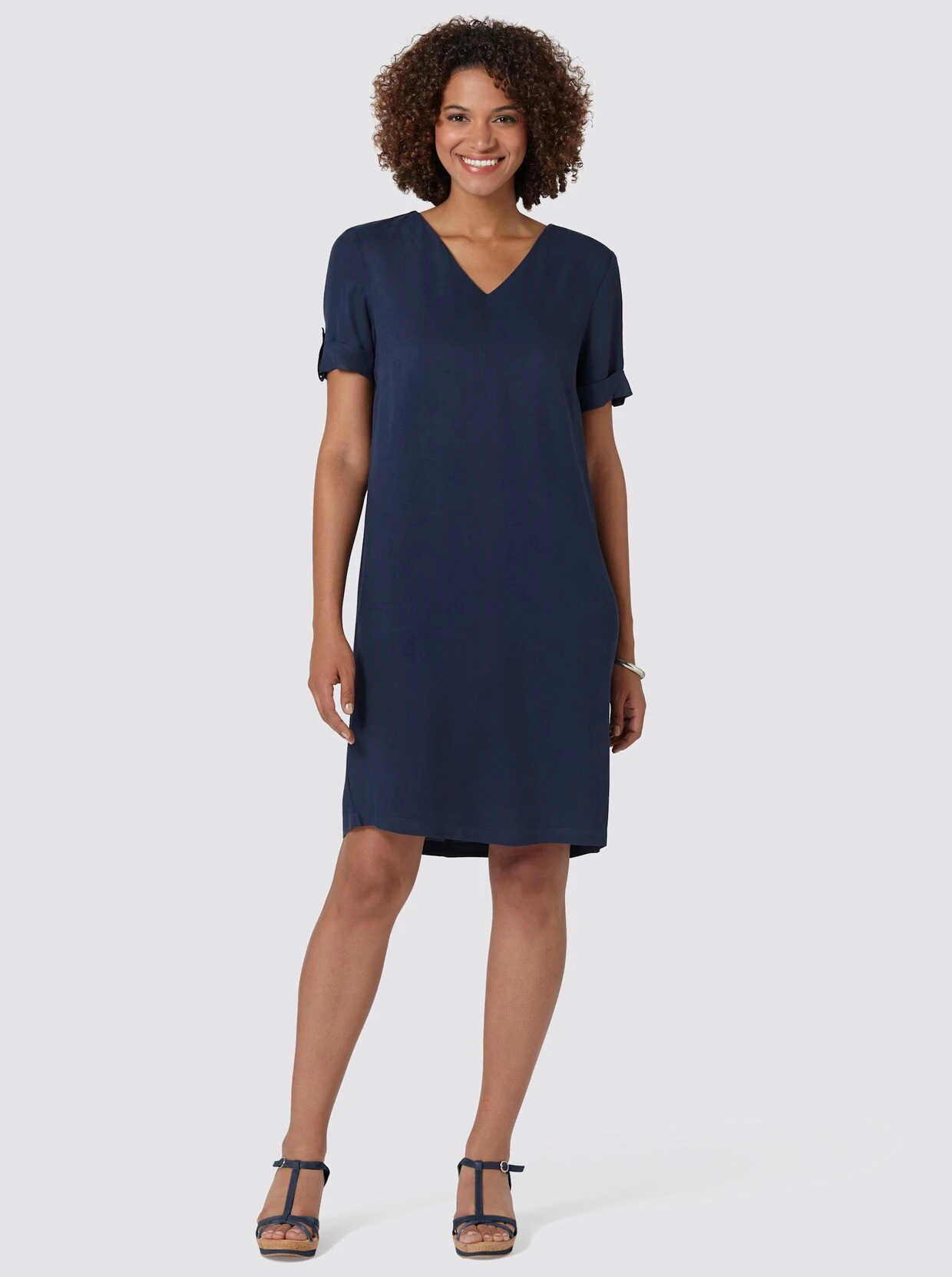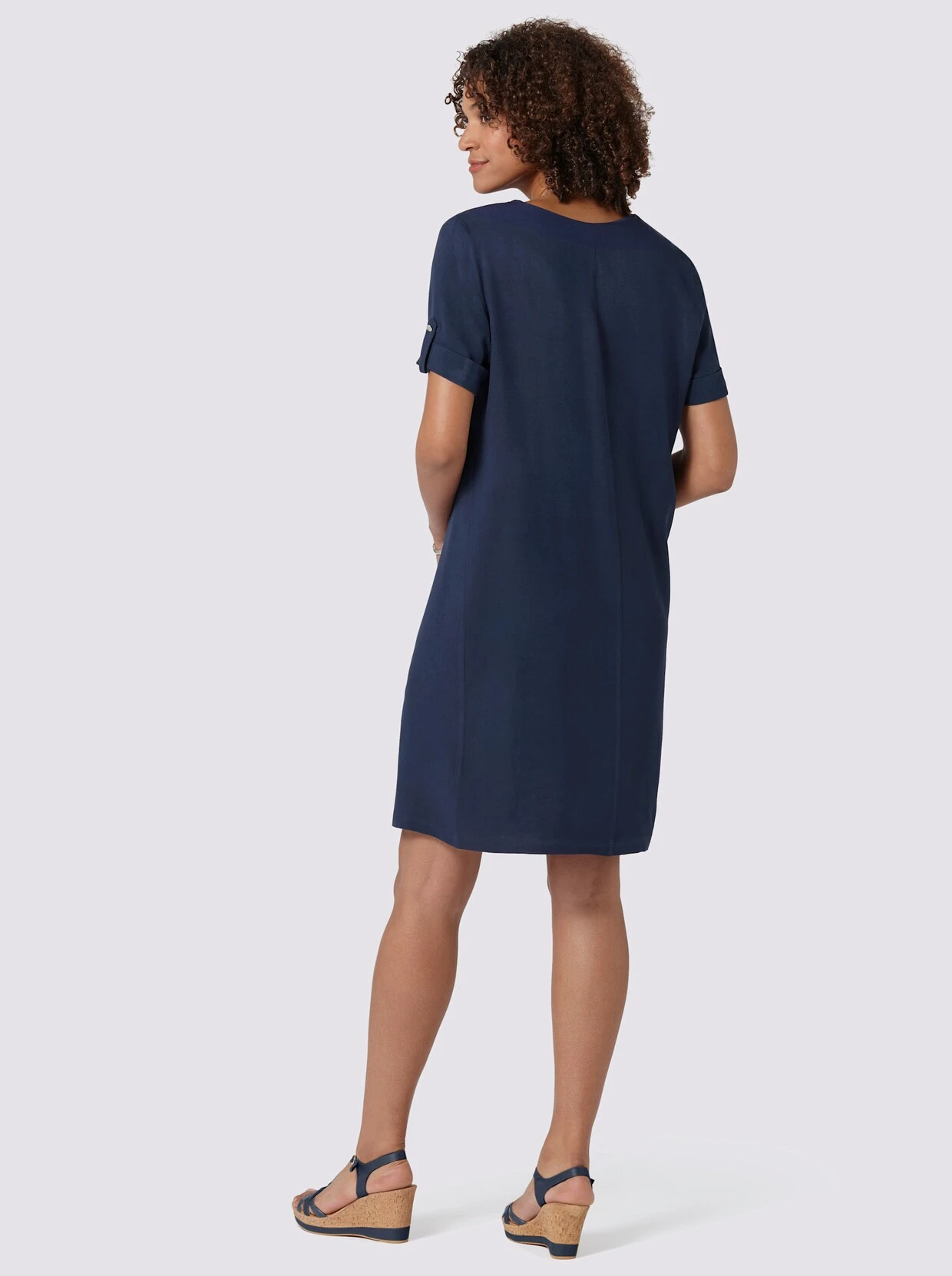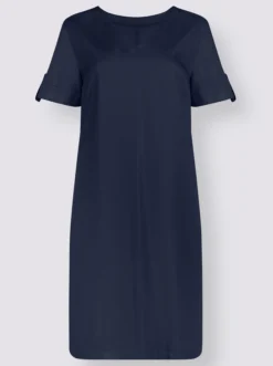 Reinschlüpfen. Wohlfühlen. Gut aussehen! Dieses Kleid erfüllt alle Voraussetzungen für Ihren neuen Sommer-Liebling! Tolle Qualität aus hochwertiger Twill-Viskose: wunderbar trageangenehm und weich fließend! V-Ausschnitt, Brustabnäher, kurze Ärmel mit Umschlag und Zierriegel.