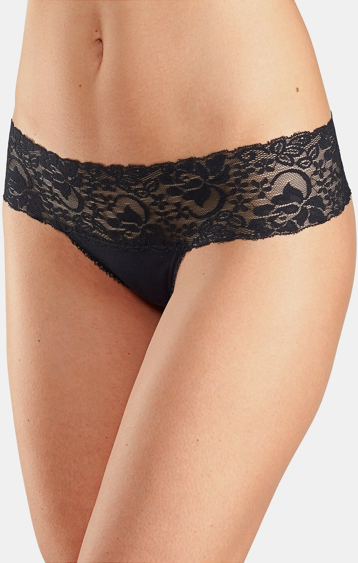 Verführerischer Spitzenstring im 3er-Pack von Vivance Active. Breites, elastisches Spitzenbündchen. Weiche Einfassungen am Beinausschnitt. Bequeme Stretchqualität.