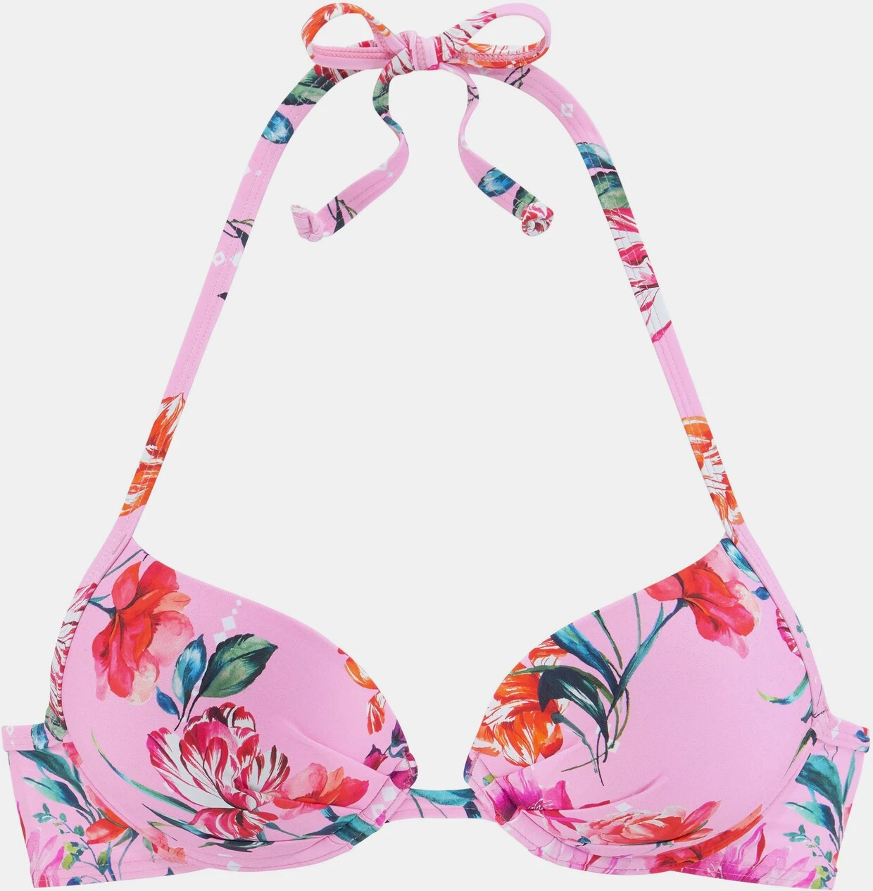 Push-up-Bikinitop von Sunseeker. Verspielter Blumendruck. Neckholder zum Binden. Wattierte Cups mit integrierten Kissen. Aus der Mix-Kini-Serie. Angenehme Qualität.