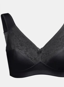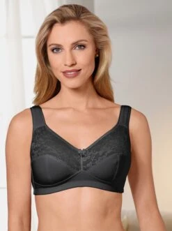 Entlastungs-BH ohne Bügel von Susa. Weiche, unterlegte Spitze an den Obercups. 3-geteilte Cups, breite, im Rücken verstellbare Träger.