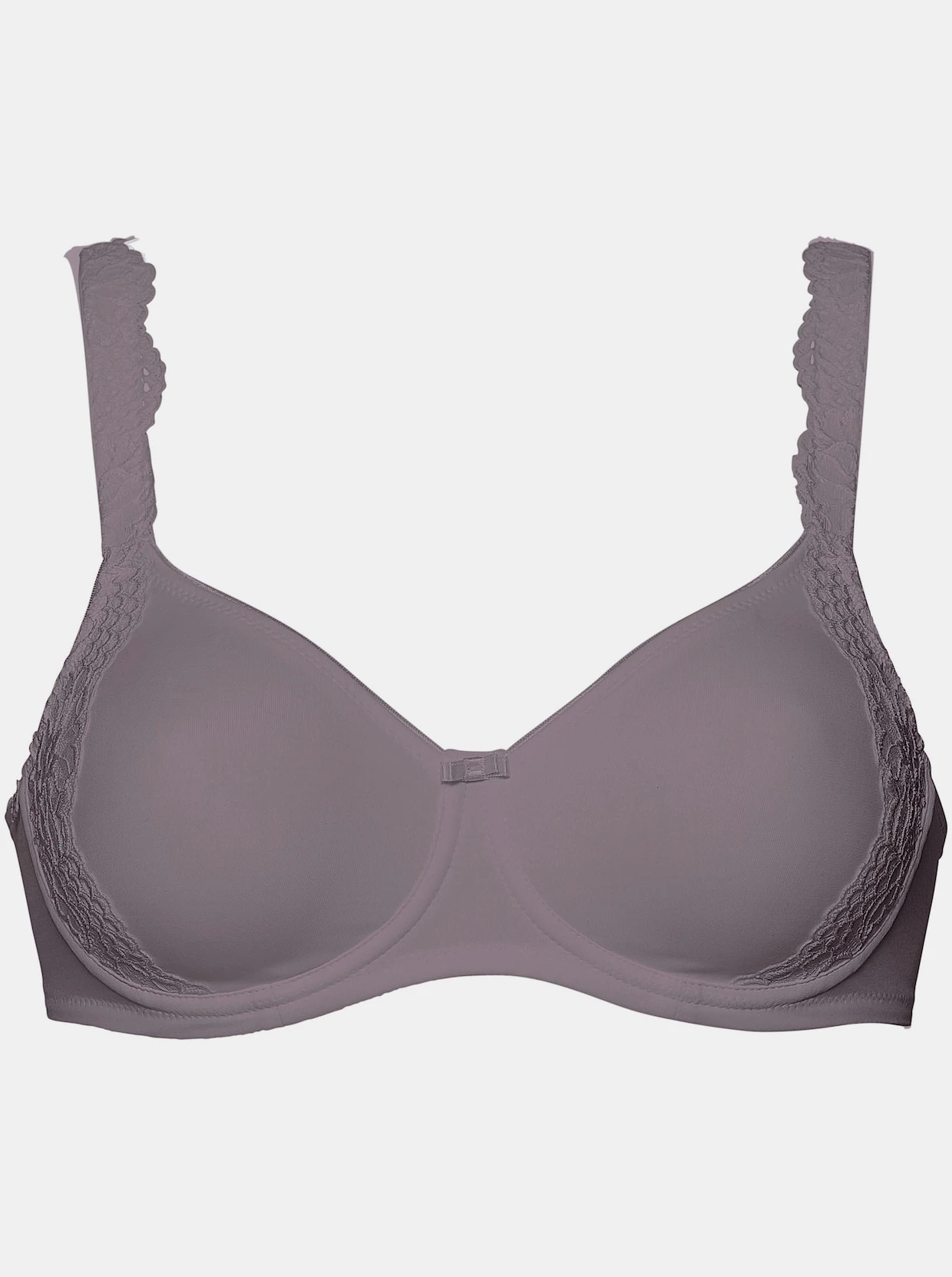 Minimizer-BH mit Bügel von Susa. Die gemoldeten Cups schmückt seitlich eine Spitzenverzierung bis in die etwas breiteren, im Rücken verstellbaren Träger. Fein glänzende Satinpaspel am Dekolleté.