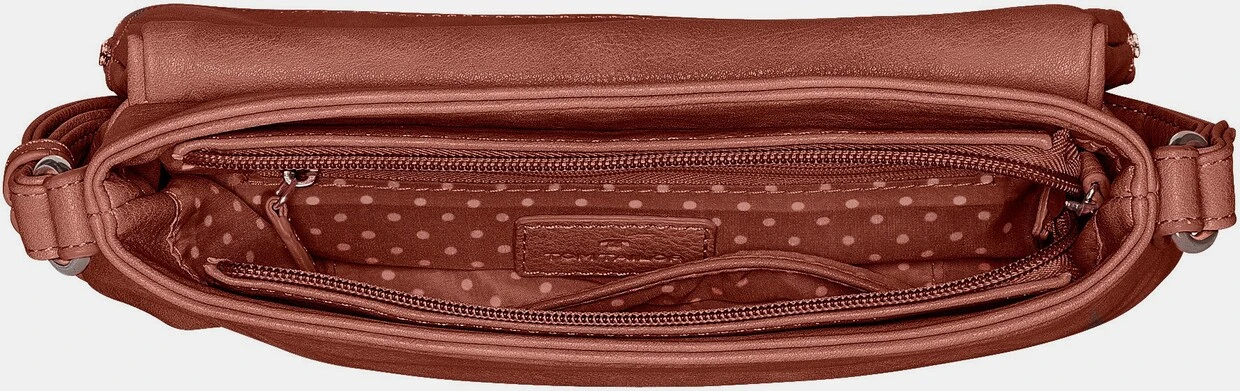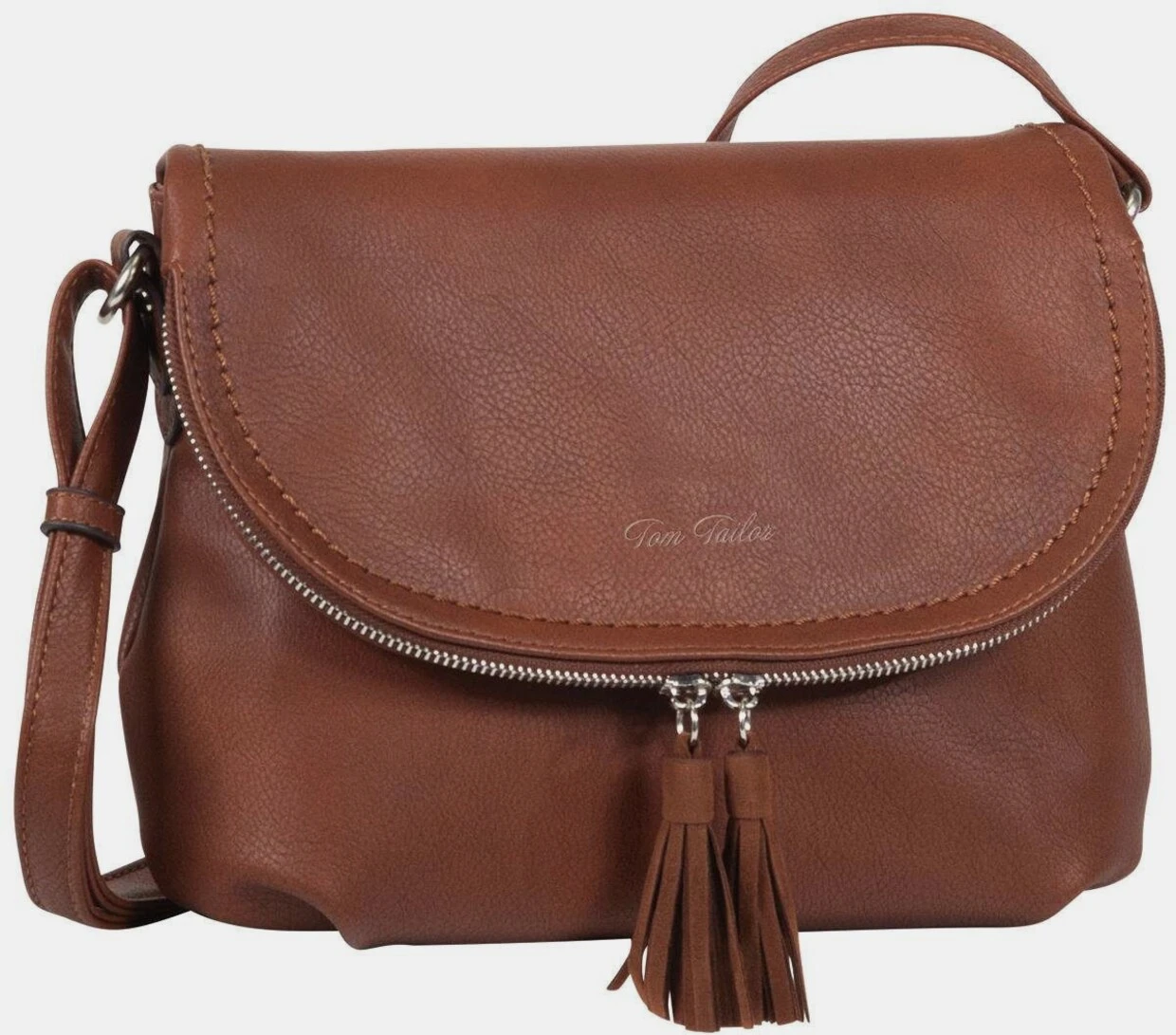 Tom Tailor Umhängetasche aus Lederimitat. Überschlag mit Magnetverschluss. RV-Hauptfach mit RV-Innenfach und Steckfach. RV-Fach im Überschlag. RV-Rückfach. Verstellbarer Umhängeriemen. Gr. ca. B/H/T: 29/23/7 cm.