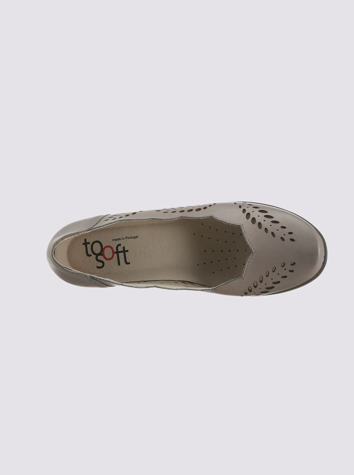 Die Sommer-Variante eines Klassikers: Pumps von Tosoft mit sommerlichen Durchbrüchen, dekorativen Wellenkanten und extra weicher Innenausstattung. Obermaterial aus Glattleder, innen aus Microfaser. Wechselfußbett. Flexible TR-Laufsohle mit Trittdämpfung und ca. 40 mm Absatz. Weite H.
