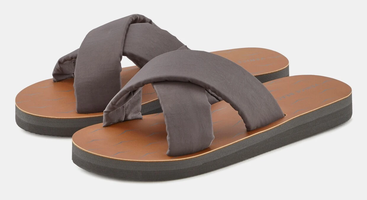 Pantolette VEGAN von VENICE BEACH. Wasserabweisendes Material. Hervorragend geeignet für Strand und Pool. Obermaterial und Futter aus Textil. Decksohle und Laufsohle aus Synthetik.
