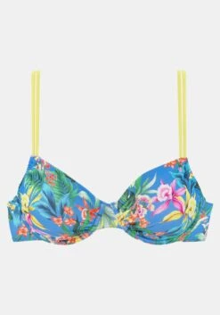 Stylischer Bügelbikini von Venice Beach. Mit großem Print und eingearbeiteten Bügeln. Das Top ist im Nacken zu binden und im Rücken zu schließen. Mit herausnehmbaren Cups. Hose mit schmalen Seitennähten und kleinem Emblem. Trageangenehme Qualität.