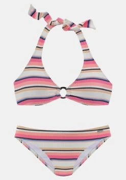 Gestreifter Triangel-Bikini von Venice Beach. Oberteil mit Zierring zwischen den Cups. Im Nacken zu binden und im Rücken zu schließen. Herausnehmbare Softcups. Hose in klassischer Passform. Trageangenehme Qualität mit recyceltem Polyamid.