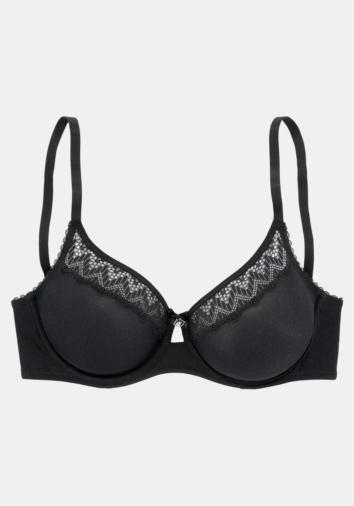 Femininer Bügel-BH mit kleinem Cut-Out, Zierschleife und modischem Metallaccessoire. Rundherum aus feinem Soft Mesh und graphischer Spitze. Integrierter Formbügel für einen zuverlässigen Halt. Mit individuell verstellbaren Trägern und Rückenverschluss. Passende Unterteile aus der gleichen Serie erhältlich. Obermaterial: 88% Polyamid, 12% Elasthan.