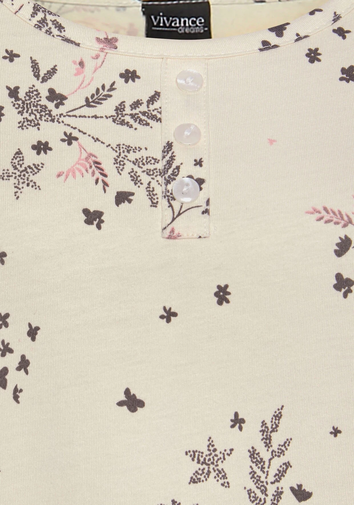Kurzes Langarm Nachthemd mit allover Print und und Knopfleiste am Runghaulsausschnitt. Angenehme Baumwollqualität.