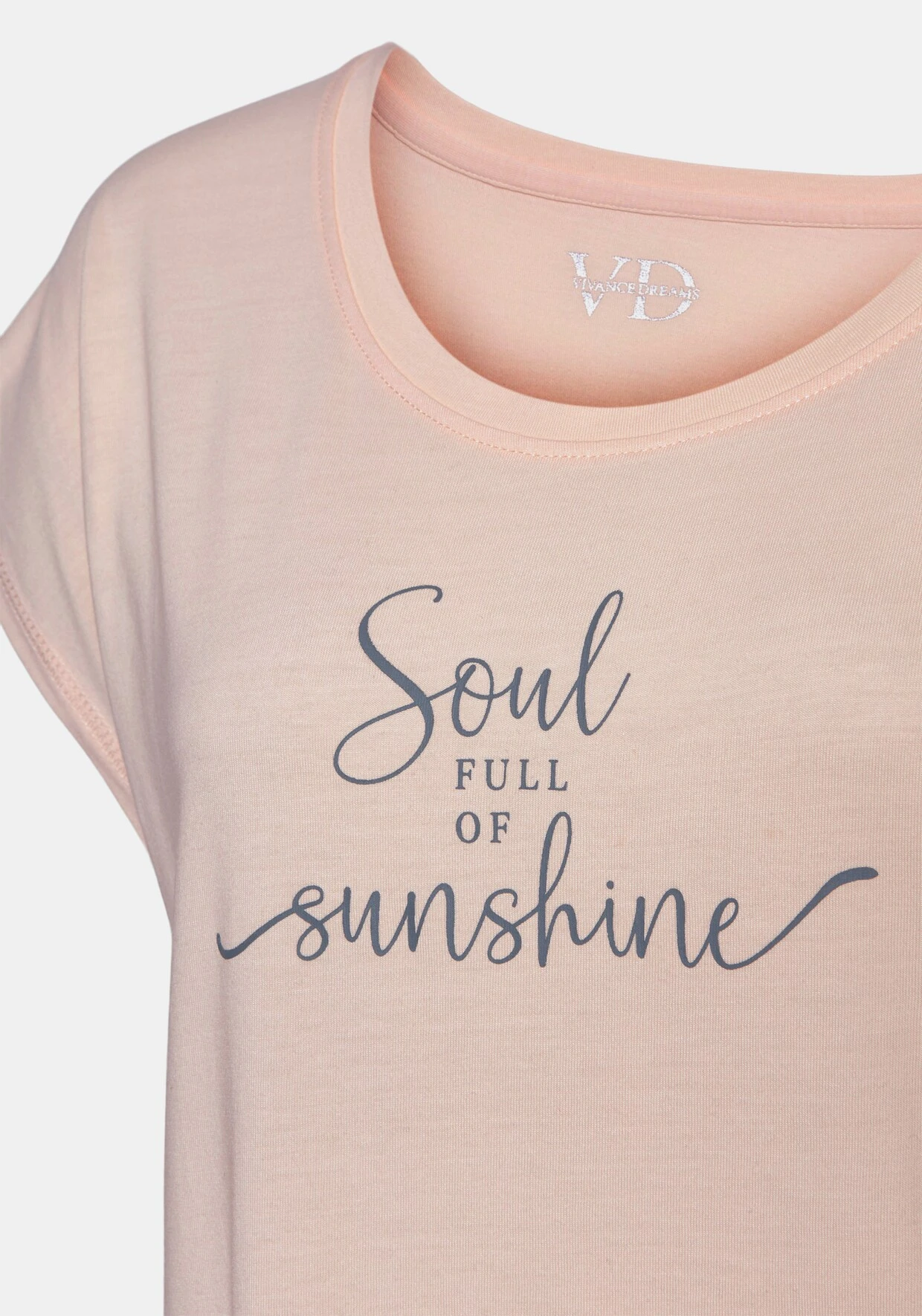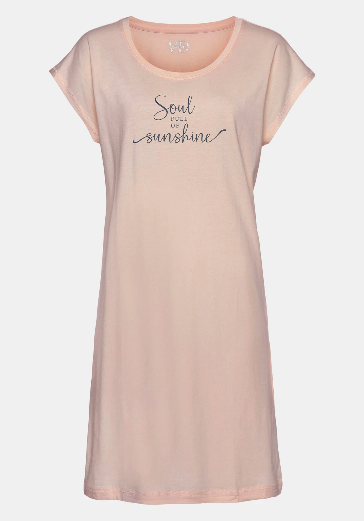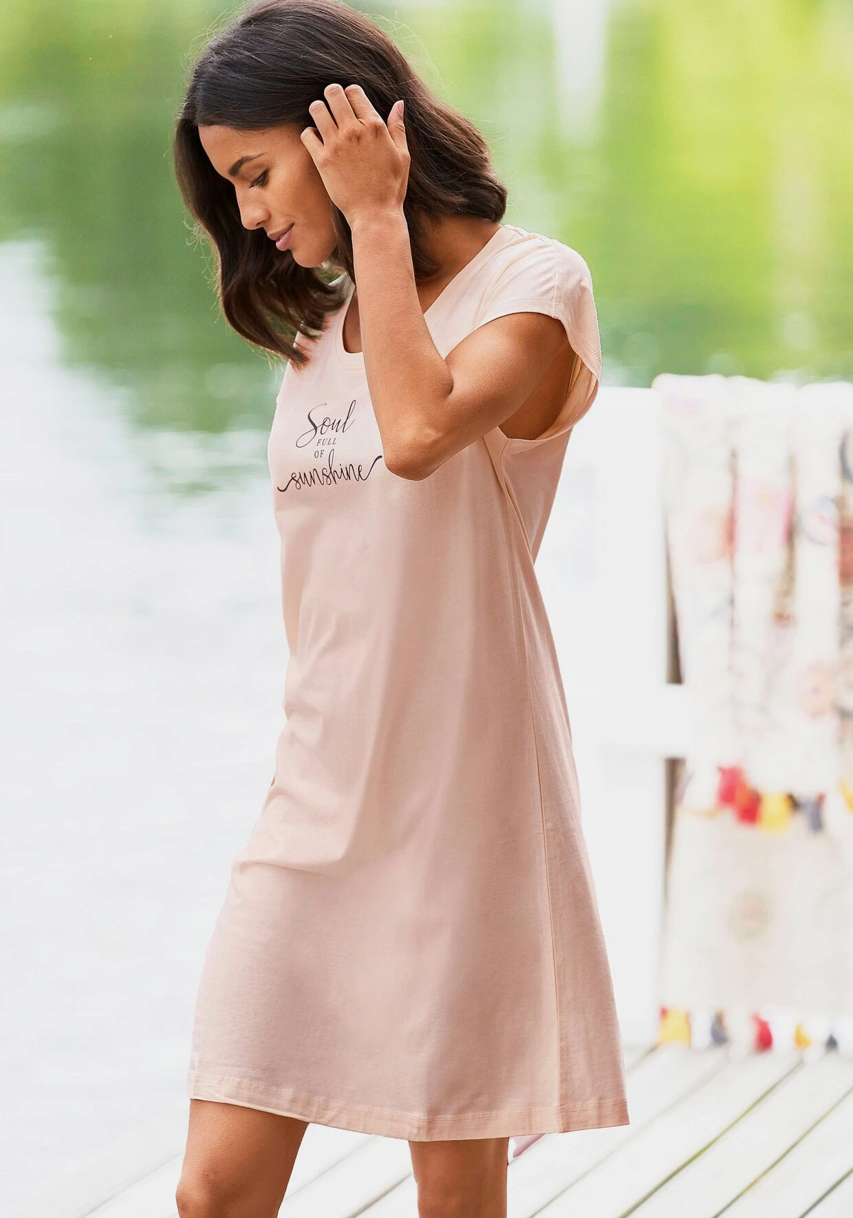 Kurzes Nachthemd von Vivance Dreams. Mit Wording-Print vorn. Bequeme Passform mit Rundhalsausschnitt und kurzen, angeschnittenen Ärmeln. Weiche Single Jersey-Qualität aus 50% Baumwolle, 50% Viskose
