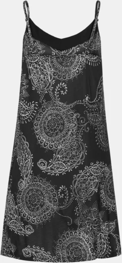 Neglige‘ mit allover Print und leichter Taillierung. Schmale, verstellbare Träger und schöner V-Ausschnitt. Angenehme Viskosequalität.
